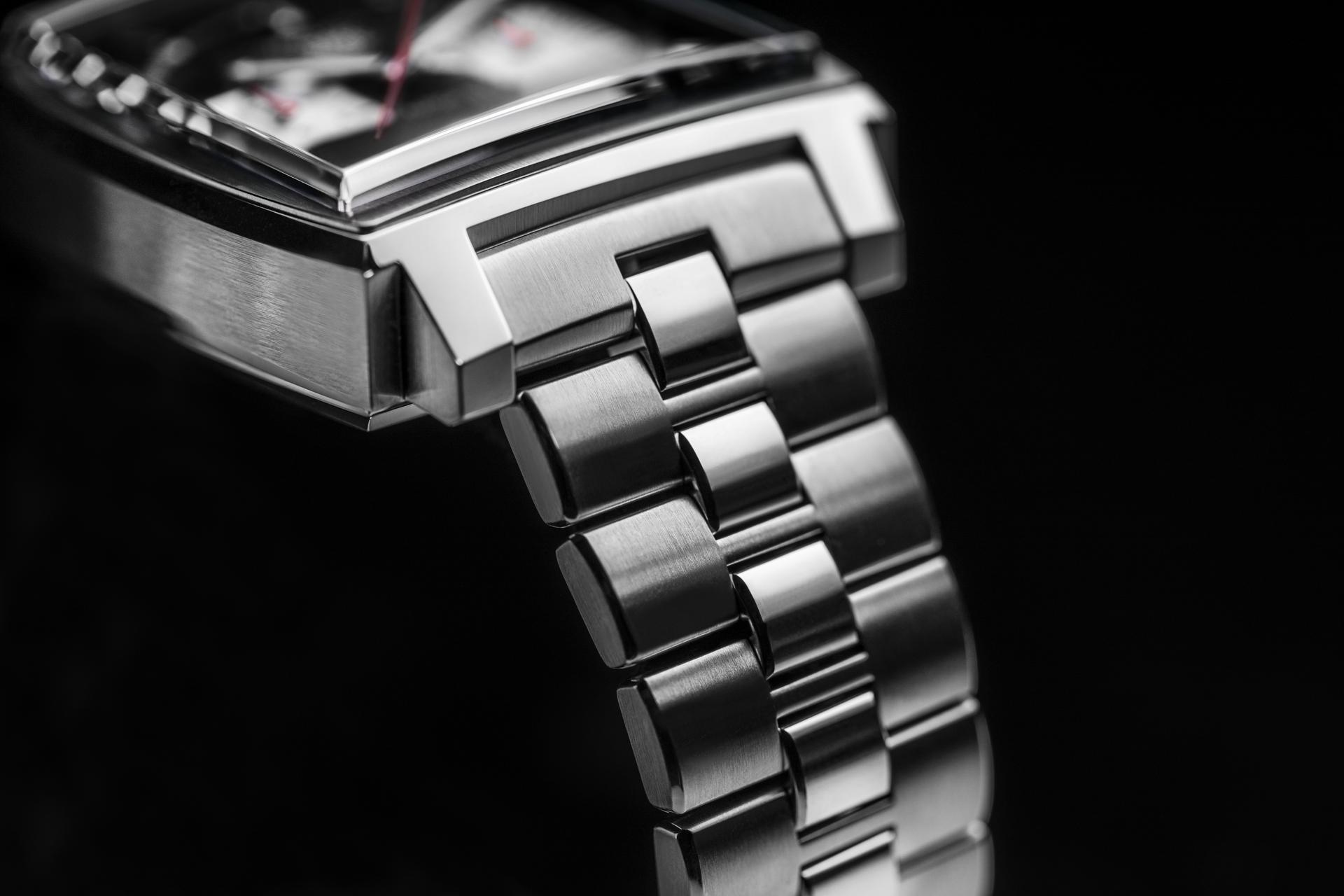 A design feature that might stand out as being unique to these Monaco novelties is the stainless-steel bracelet. It has been nearly two decades since a new Monaco was presented on a metal bracelet. This particular example draws on the H-shaped bracelet that was used for Monaco watches in the early 1970s. The designers wanted to give the 2020 models a new flair and found their inspiration among the archive pieces at the TAG Heuer Museum in La Chaux-de-Fonds. The original steel bracelet has been redesigned to meet today’s standards and improve comfort for the wearer.