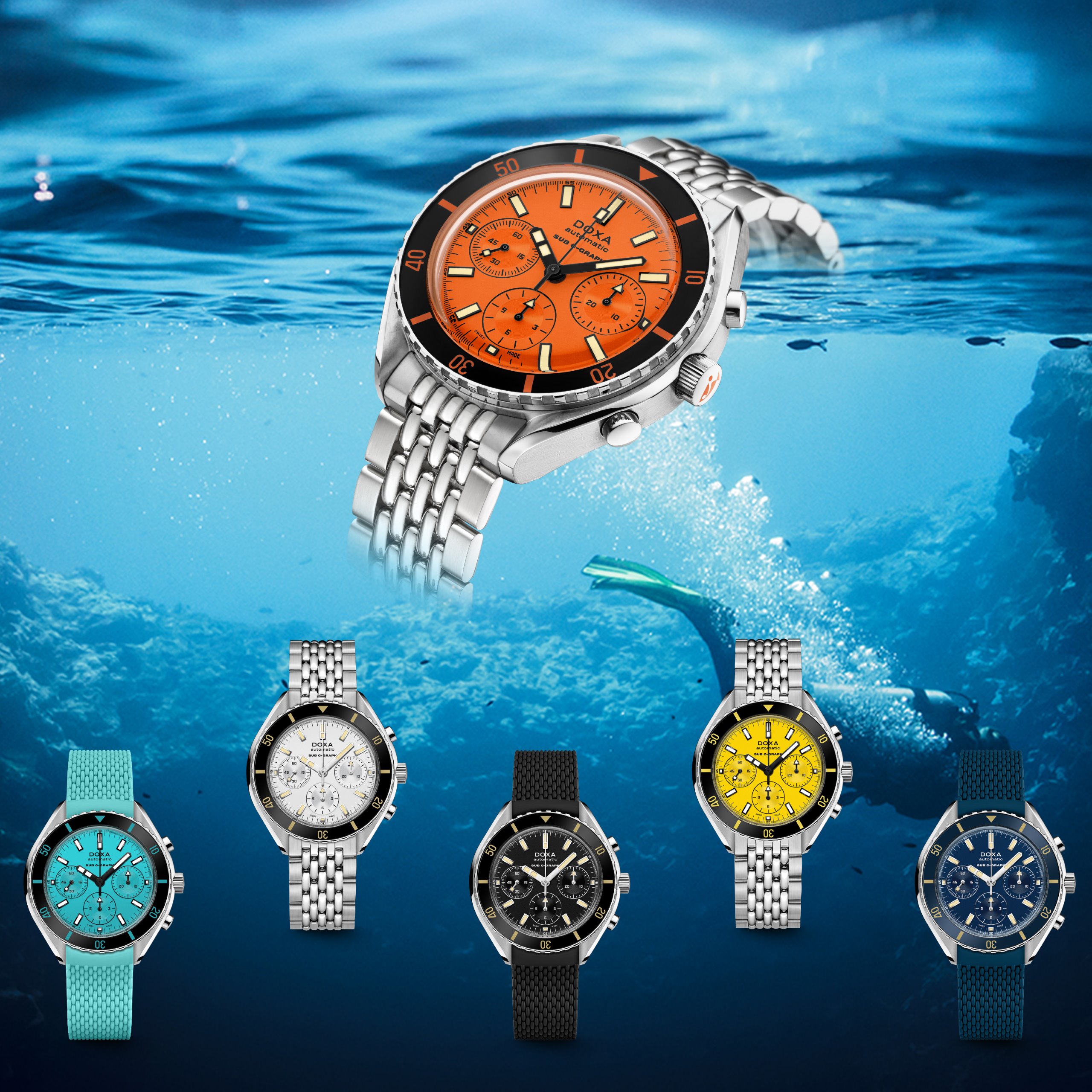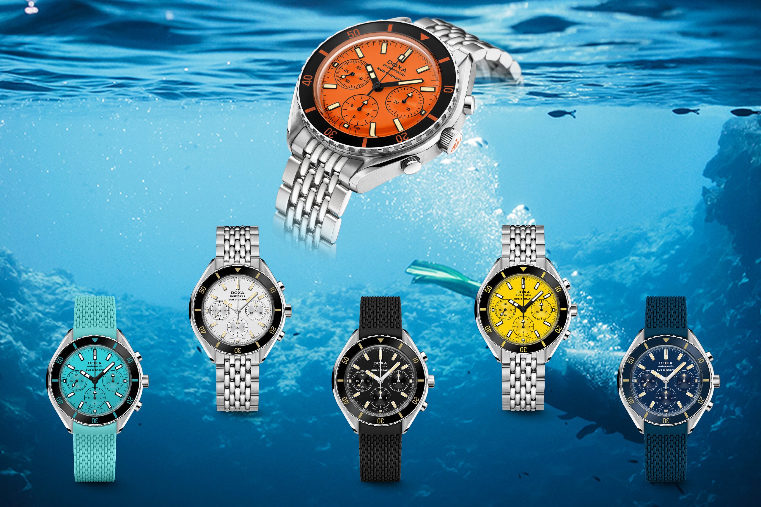 The DOXA SUB 200 C-GRAPH breaks the waves in 6 colors