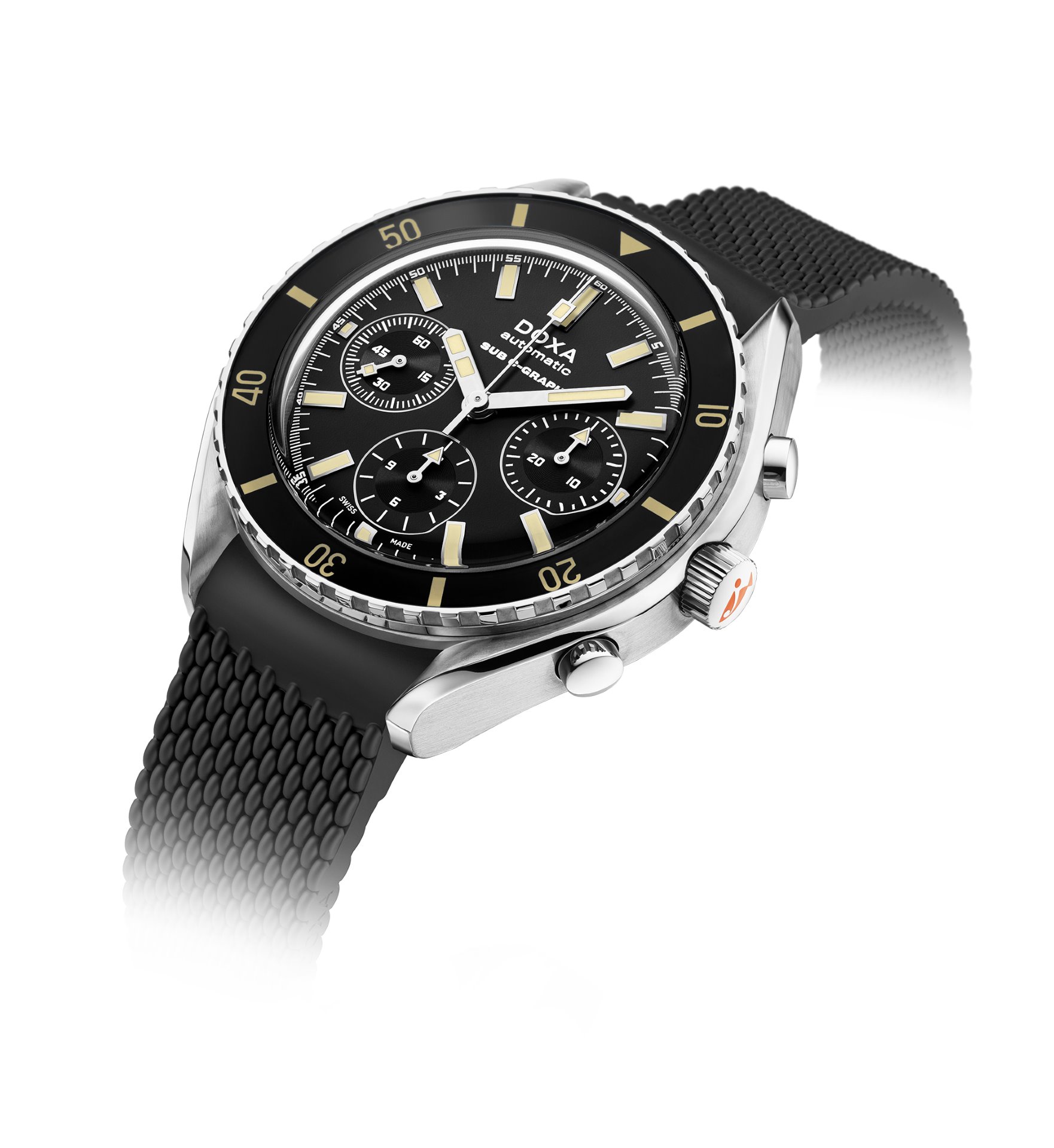 Colour is in DOXA’s DNA. Over 50 years ago in 1967, DOXA Watches was the first brand to introduce orange in a world of white, grey or black watch dials. It wasn’t just about daring to be different. DOXA SUB 200 C-GRAPH – It was a purpose-driven choice.