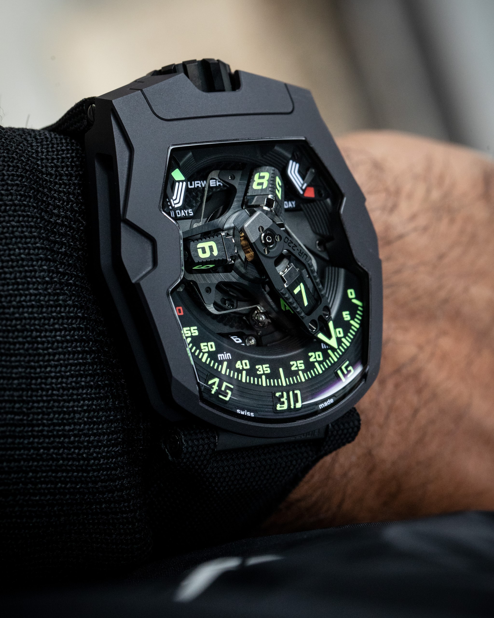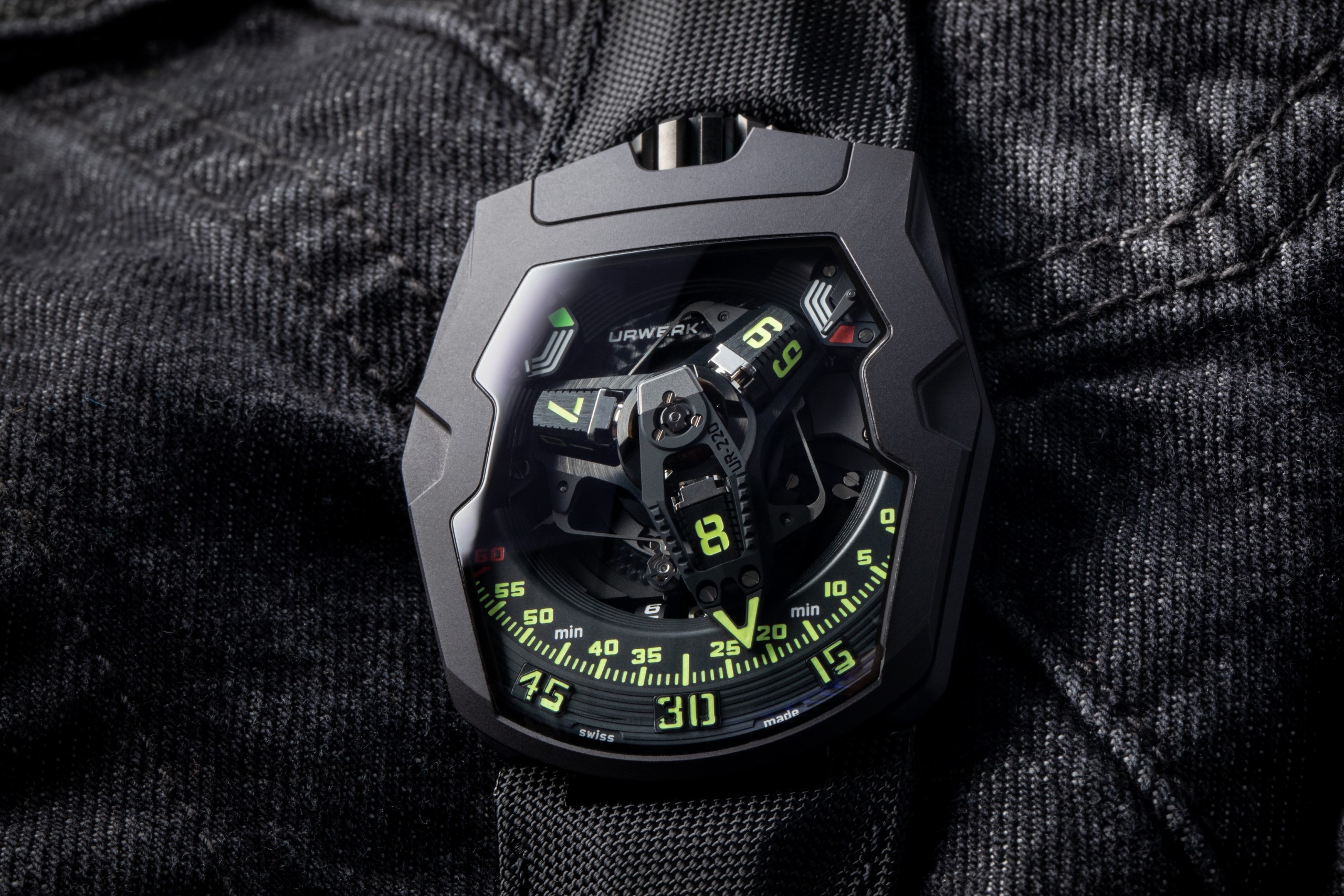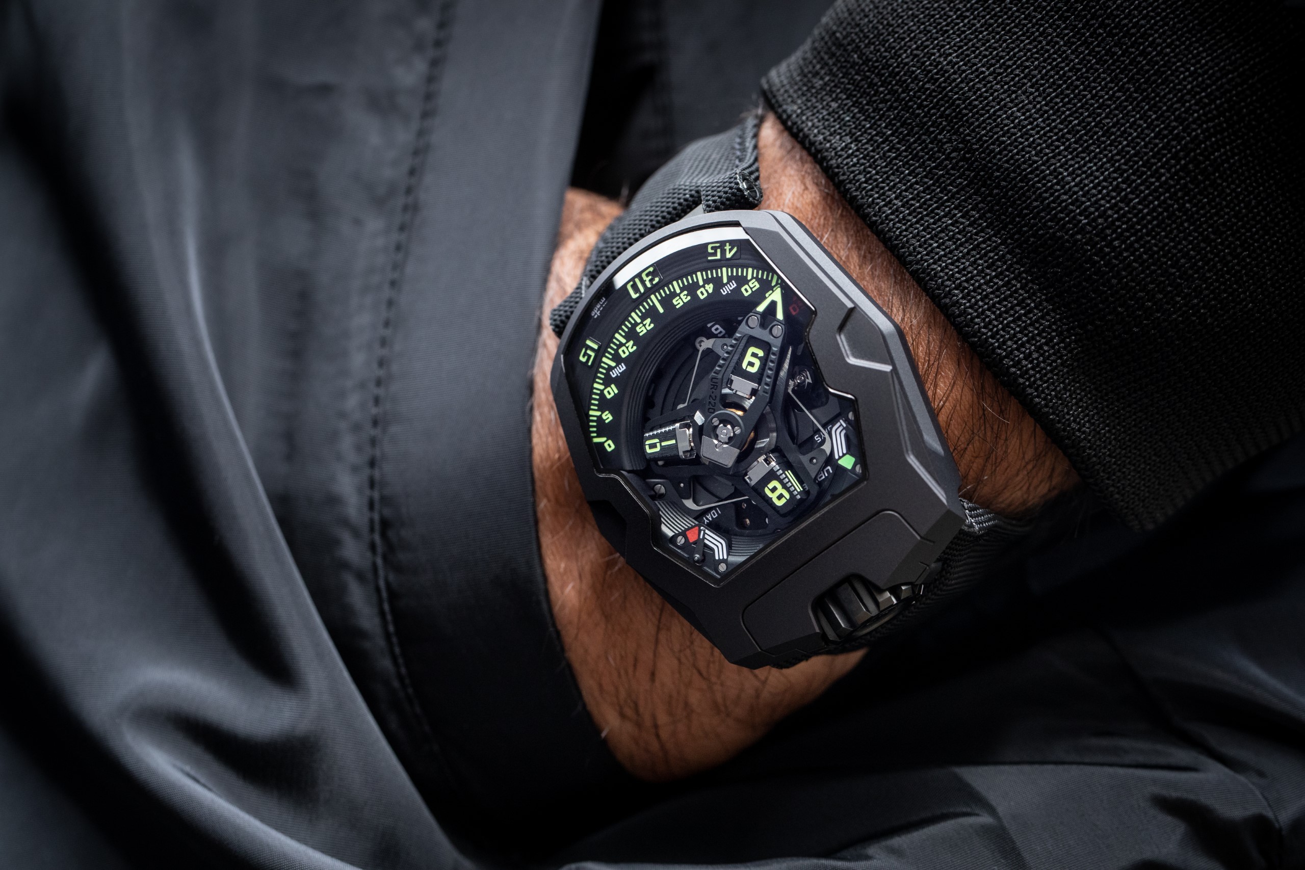 The collection of UR-220 watches has taken off. The initial version in carbon has now been joined by a new model — the URWERK UR-220 All Black. URWERK is exploring all the shades of its lucky colour. Black will always be black, but it comes in many textures.