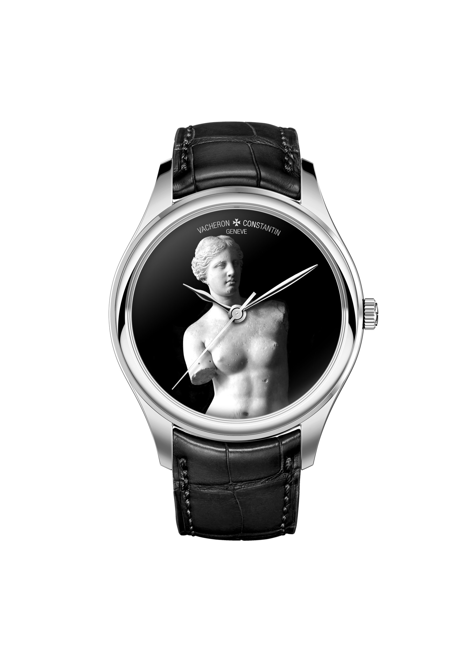 - A bespoke one-of-a-kind model, whose dial will reproduce in miniature enamel or grisaille enamel an artwork kept in the Louvre Museum and chosen by its buyer.