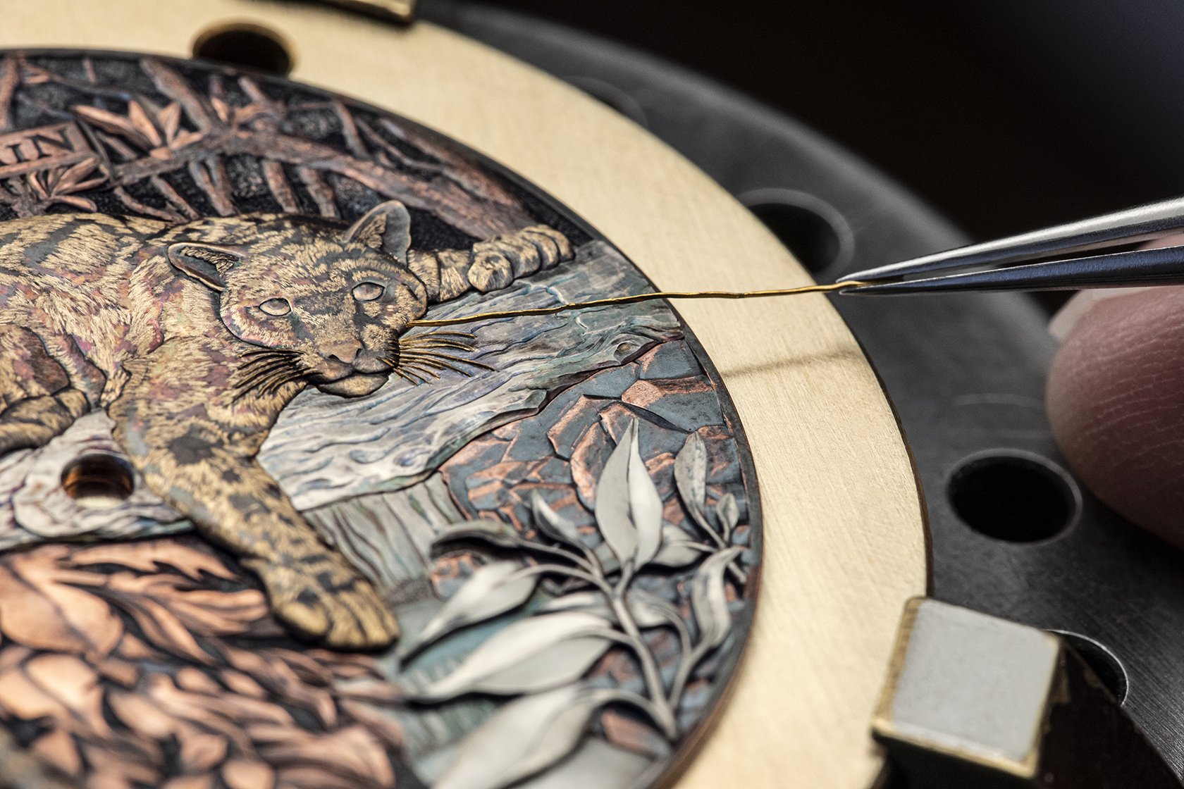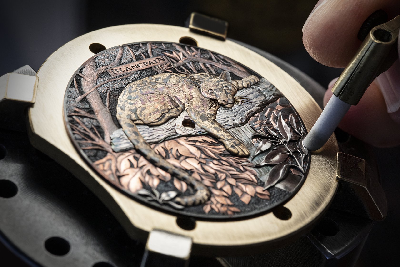 Like the Formosa clouded leopard, the artistic techniques practiced by Blancpain are rare in watchmaking. Some, such as miniature enamel painting, are only offered by a handful of watch companies worldwide. Others, such as shakudō, are produced exclusively by the Manufacture. The range of Blancpain’s craftsmanship is vast and represents an age-old heritage.