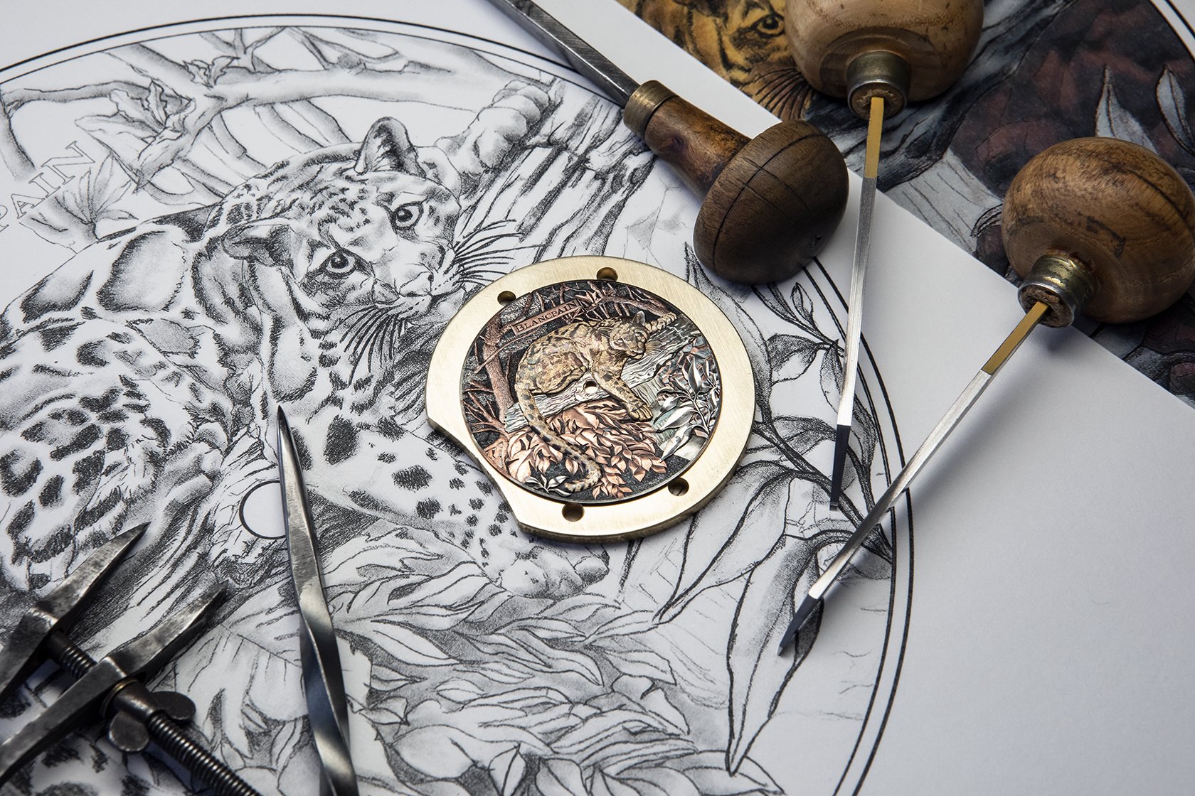 The Formosa clouded leopard, endemic to the island, is an important symbol in the collective consciousness of the Taiwanese. The Paiwan aboriginal people consider the leopard to be a spiritual icon. If not extinct, the animal is extremely rare. Blancpain had a wish to represent this emblematic feline by drawing on its expertise in the realm of hand decoration.