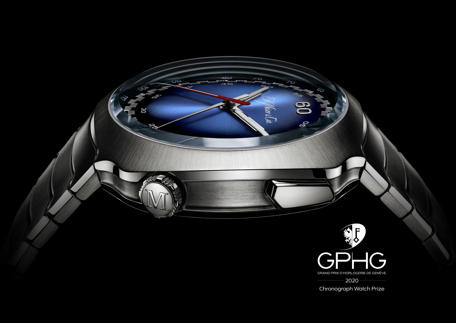 Around the edge of the Funky Blue dial, the red and white outer track measures the seconds while the inner track counts the minutes. At midday, the 60 numeral dominates the dial, harking back to the stopwatches of the Sixties and Seventies, when legibility and functionality were key. Of course, for a chronograph, accuracy is everything: this is ensured by the choice of hands to measure the elapsed time, which have a thicker base and a fine tip, like those found on counters in cars or measuring instruments. With legibility always at the forefront, H. Moser & Cie. has opted for a red seconds hand, while the minute hand is rhodium-plated. The manufacture has chosen three-dimensional curved hands to indicate the hours and minutes, formed of two sections and featuring inserts made from Globolight®, an innovative ceramic-based material which contains Super-LumiNova®.