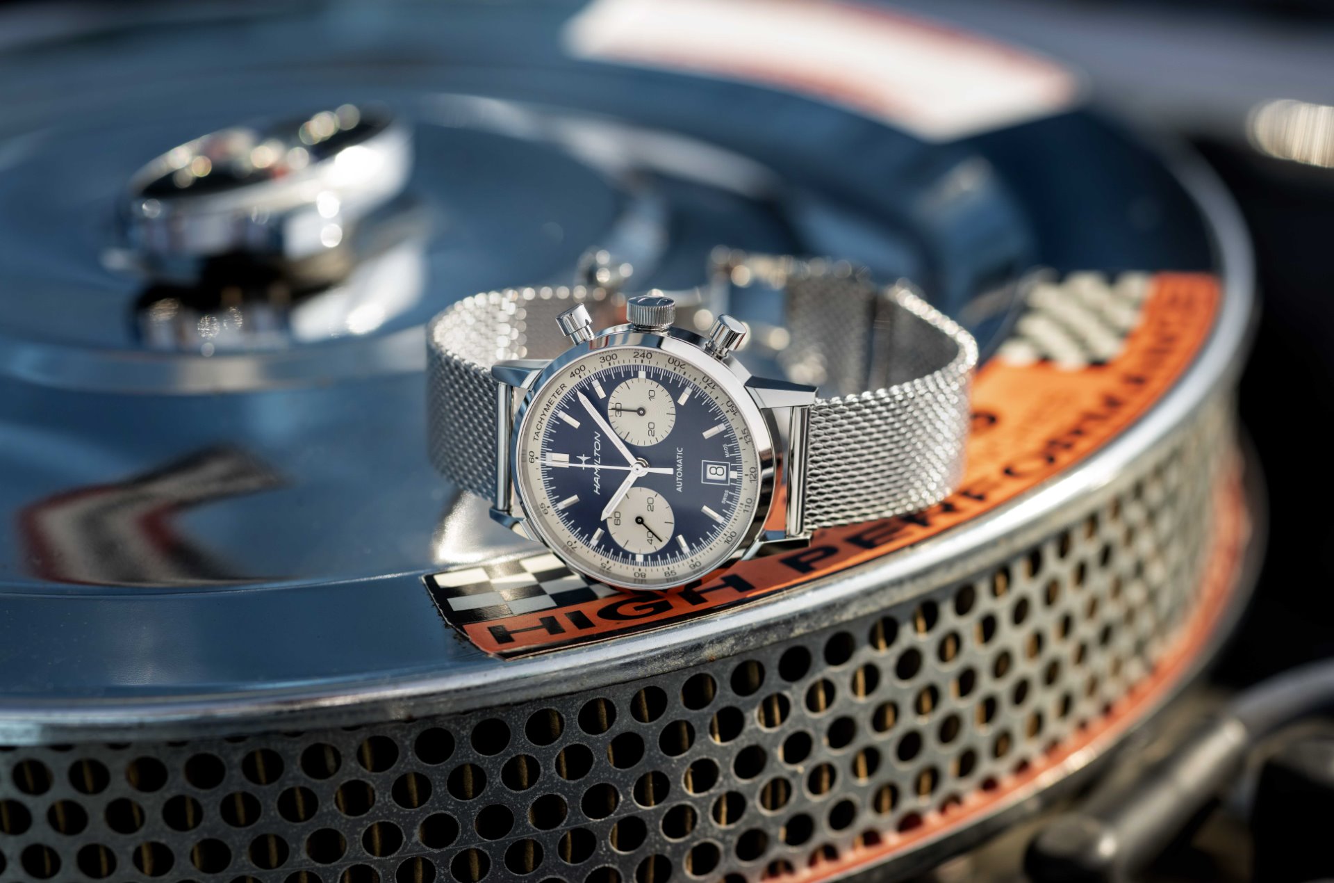 It may take its looks from the past, but the Hamilton Intra-Matic Automatic Chronograph has been a very modern success story since its launch in 2017. Inspired by one of Hamilton’s most handsome historic wristwatches, 1968’s Chronograph A, the watch with the ‘panda’ dial appeals to both vintage watch lovers and those looking for a high-quality contemporary wristwatch imbued with sporty, retro charisma.