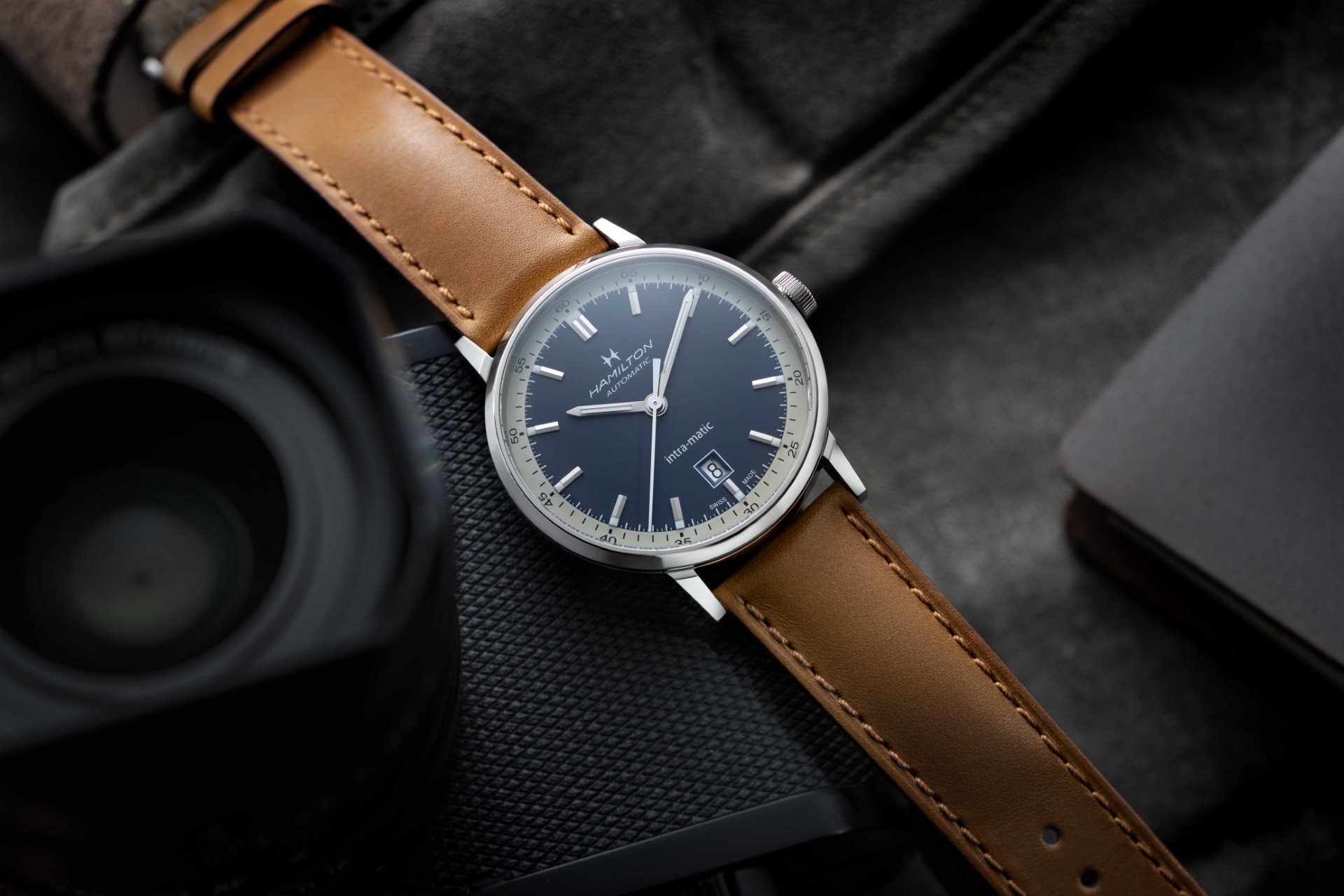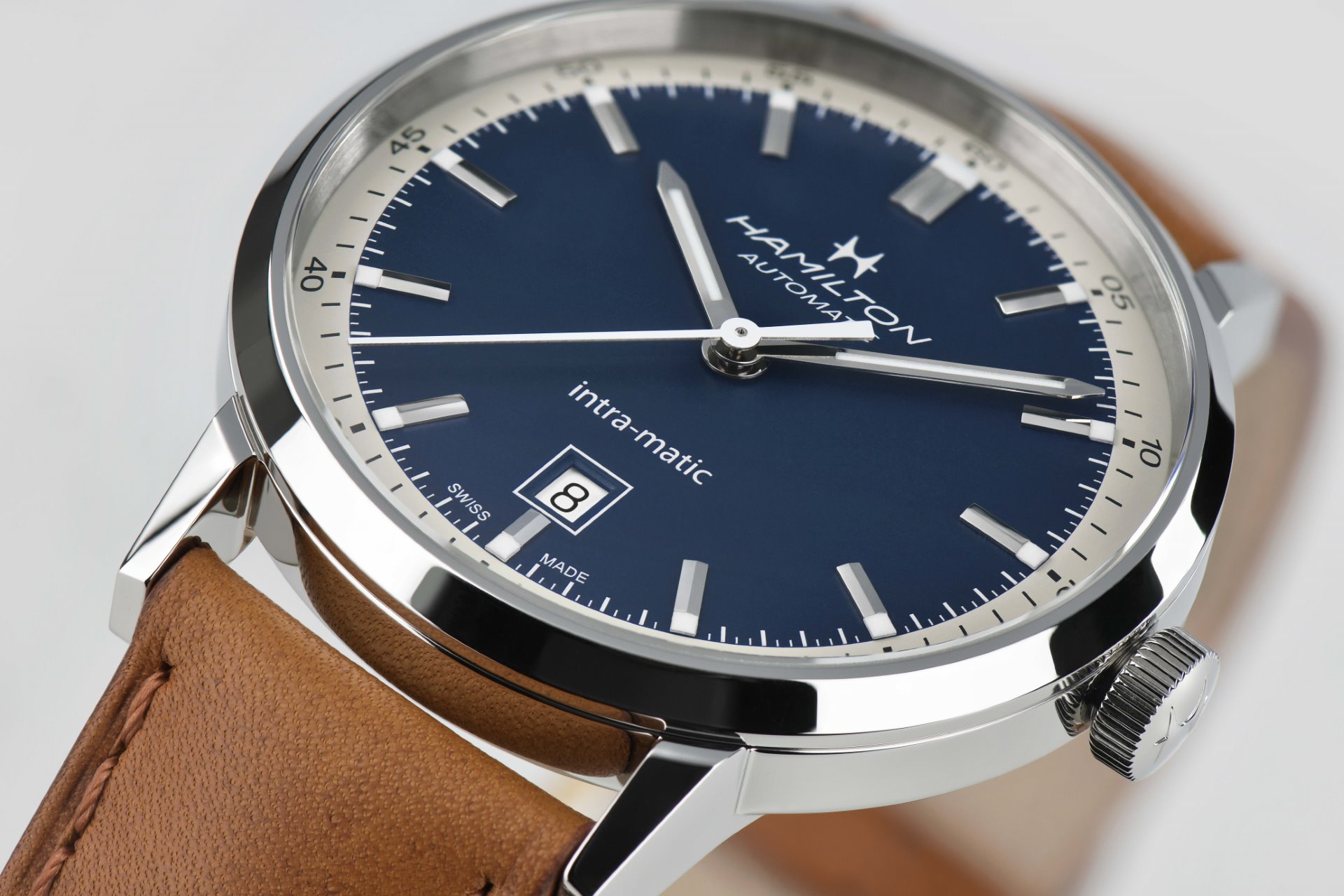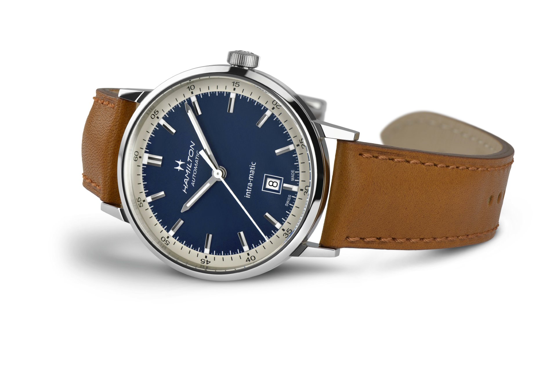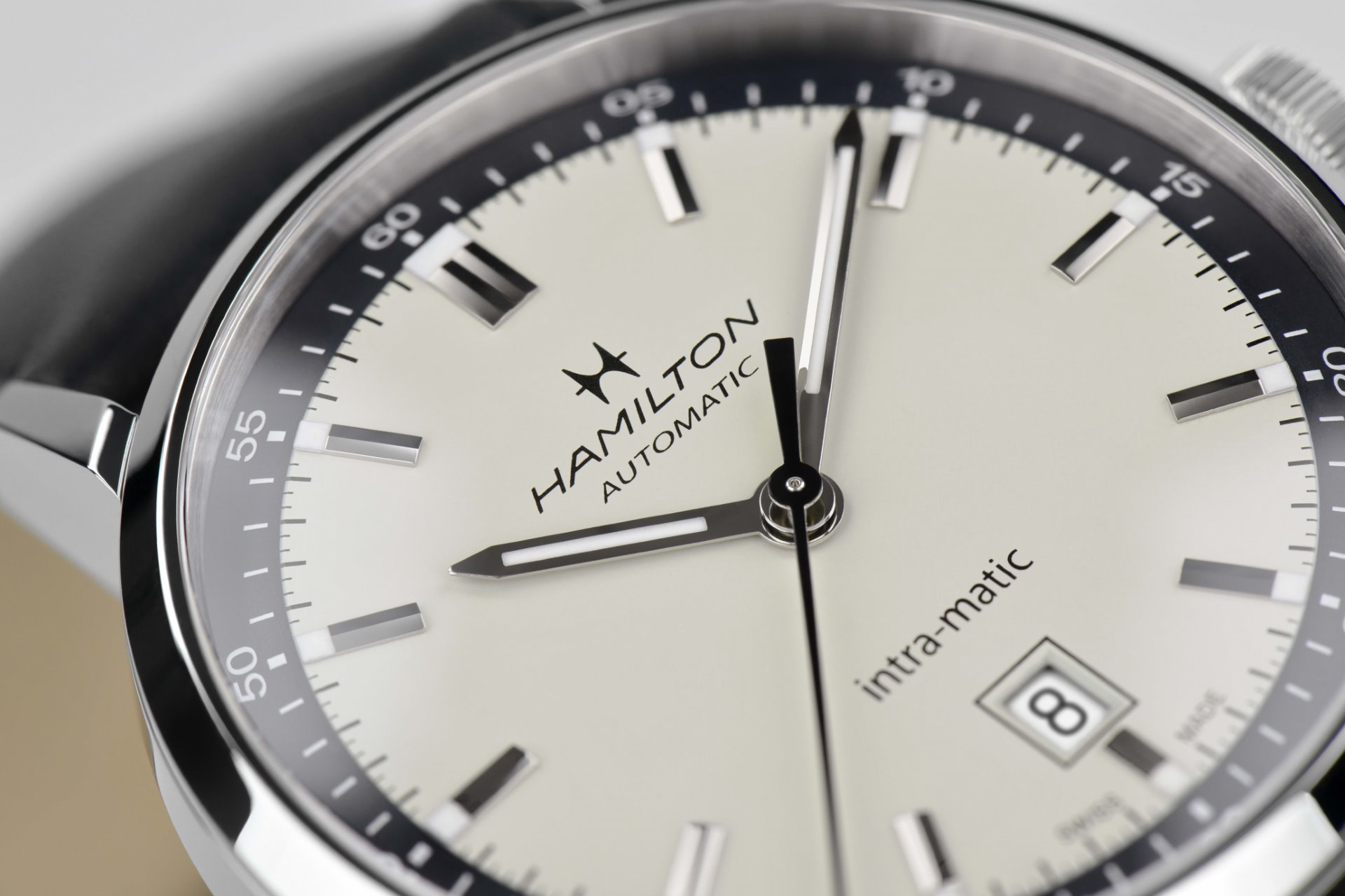 At Hamilton, we love the Automatic Chronograph’s unmistakable aesthetic so much that we decided to extend its design to a non-chronograph wristwatch. The new Intra-Matic Automatic 40mm is a sophisticated three-hand automatic with a date window at 6 o’clock. Its vintage-infused style makes it the perfect choice for those looking for a watch that can easily transition from the office to a weekend getaway on the Italian Riviera.