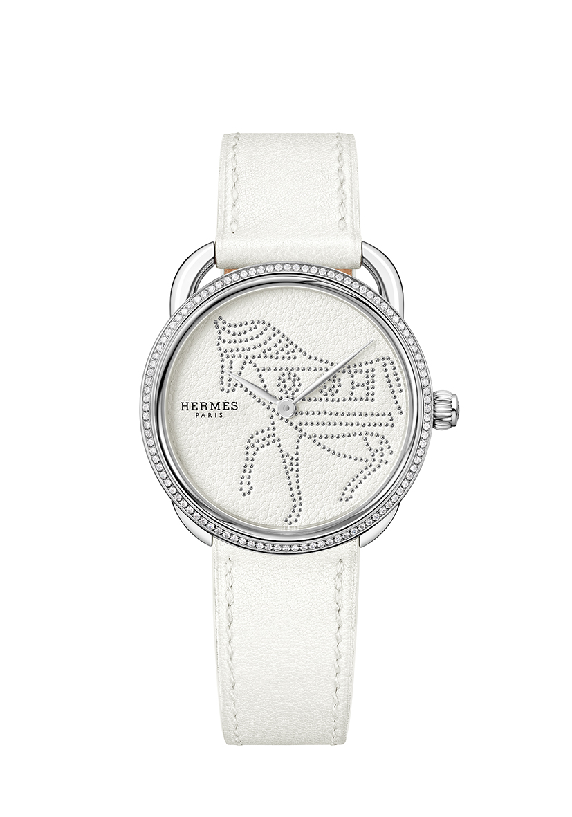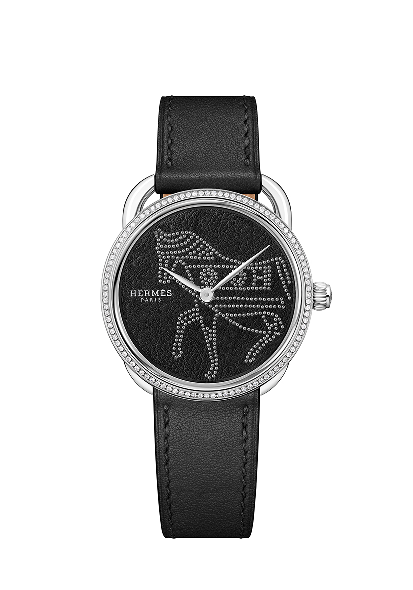 The Arceau watch adopts a studded leather dial graced with a horse silhouette – Hermès Arceau Horse