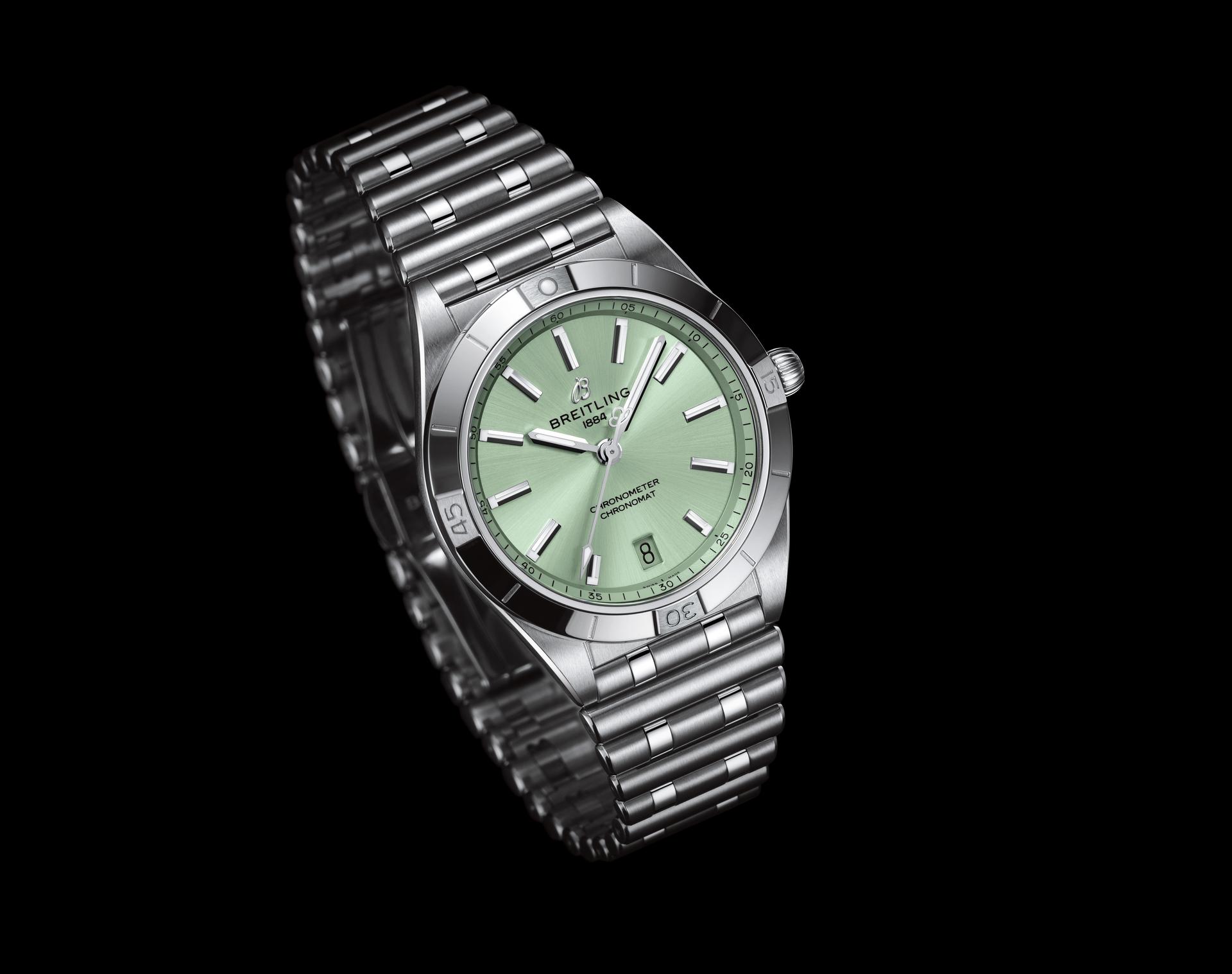 The Chronomat Automatic 36 is powered by the Breitling Caliber 10 with a reserve of about 42 hours. There are ten versions to choose from, with special lacquered dials in white, pale green, midnight blue, or copper.