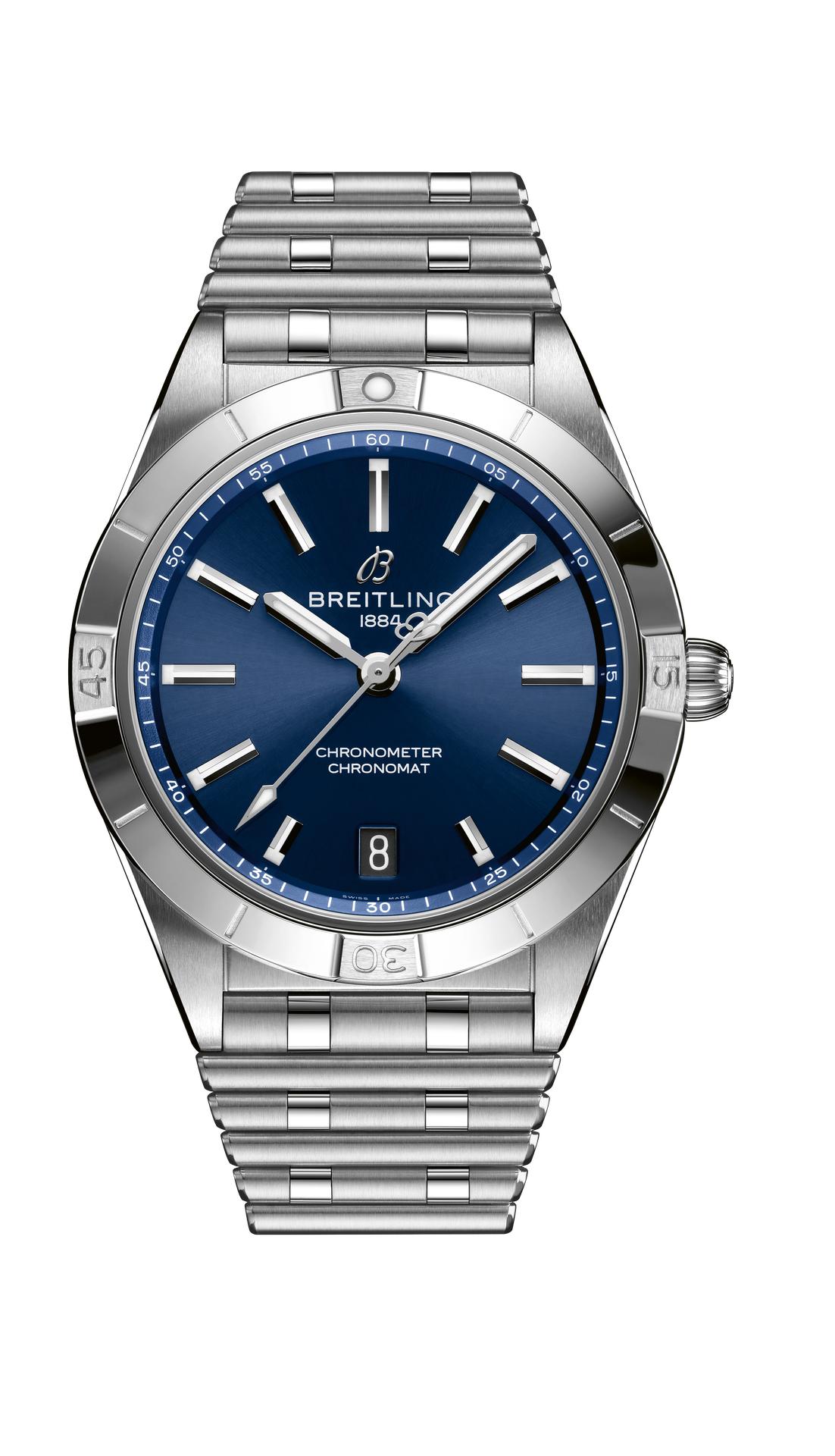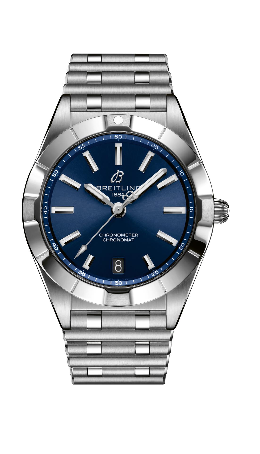 The Chronomat 32 runs on the Breitling Caliber 77 and has a battery life of three to four years. It comes in seven versions, with white or midnight blue dials.