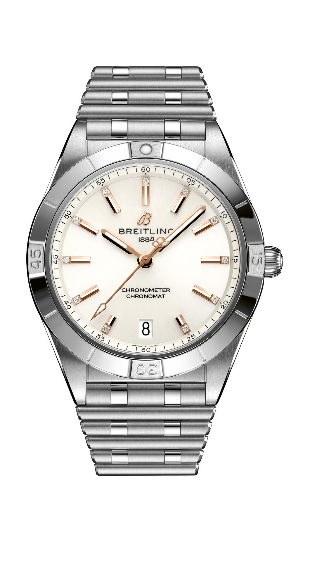 The stunning watches in the Breitling Chronomat for Women range feature Breitling’s iconic Rouleaux bracelet with a butterfly clasp, which is as robust as it is elegant. Like all Breitling watches, the chronometers are COSC-certified – an independent confirmation of their Swiss precision. Swimmers, surfers, divers, and even bathtub mermaids will appreciate their 100-meter water resistance.