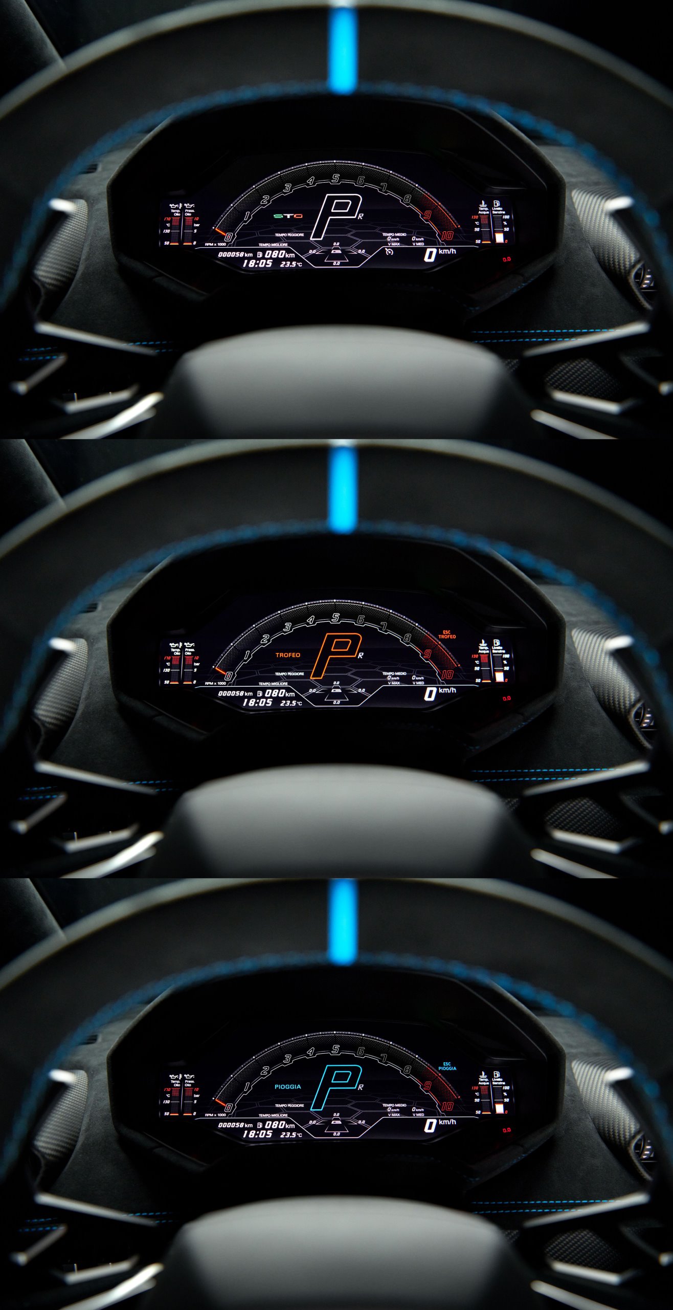 New Human Machine Interface (HMI) graphics feature on the Huracán’s touch screen, which manages the car’s functions including drive mode indicator, the LDVI system, tire pressures and brake temperatures. A fully connected telemetry system allows pilots driving their Huracán STO on racetracks to monitor and record their performance and to analyze the data via the Lamborghini UNICA app.
