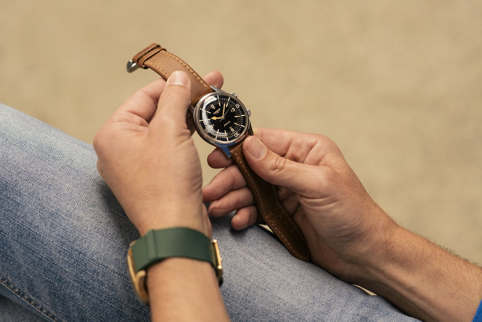 And just like on the original model, the screw-down case back is decorated with an embosses emblem of a diver. The watch is paired with a brown leather strap finished with beige topstitching, and comes with a second strap in green NATO-type nylon. Every watch comes with a tool for easy swapping of the straps as desired. This version of the Longines Legend Diver Watch watch benefits from a five-year warranty.