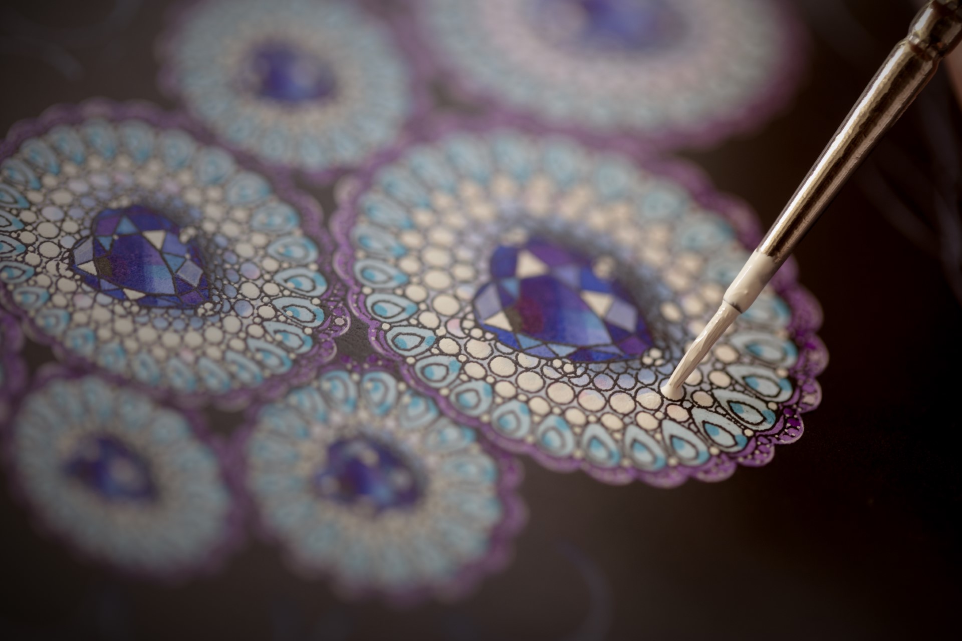 Once this miniature artwork is approved, it becomes a prototype that is entrusted to the 3D construction department for scanning and printing. Laura can then at last add colour to the model, set it with non-precious stones in order to create a realistic appearance, make it shine, bring it to life and reveal all the hidden treasures not necessarily visible on the drawing. These models are part of the heritage of the Maison and are carefully preserved. Laura explains: “As a child, I loved nothing more than drawing and playing with the tools in my grandfather’s workshop. This unique apprenticeship taught me to recognise beauty, a skill which today enables me to reveal the magic that lies within us all, and that we too often forget.”