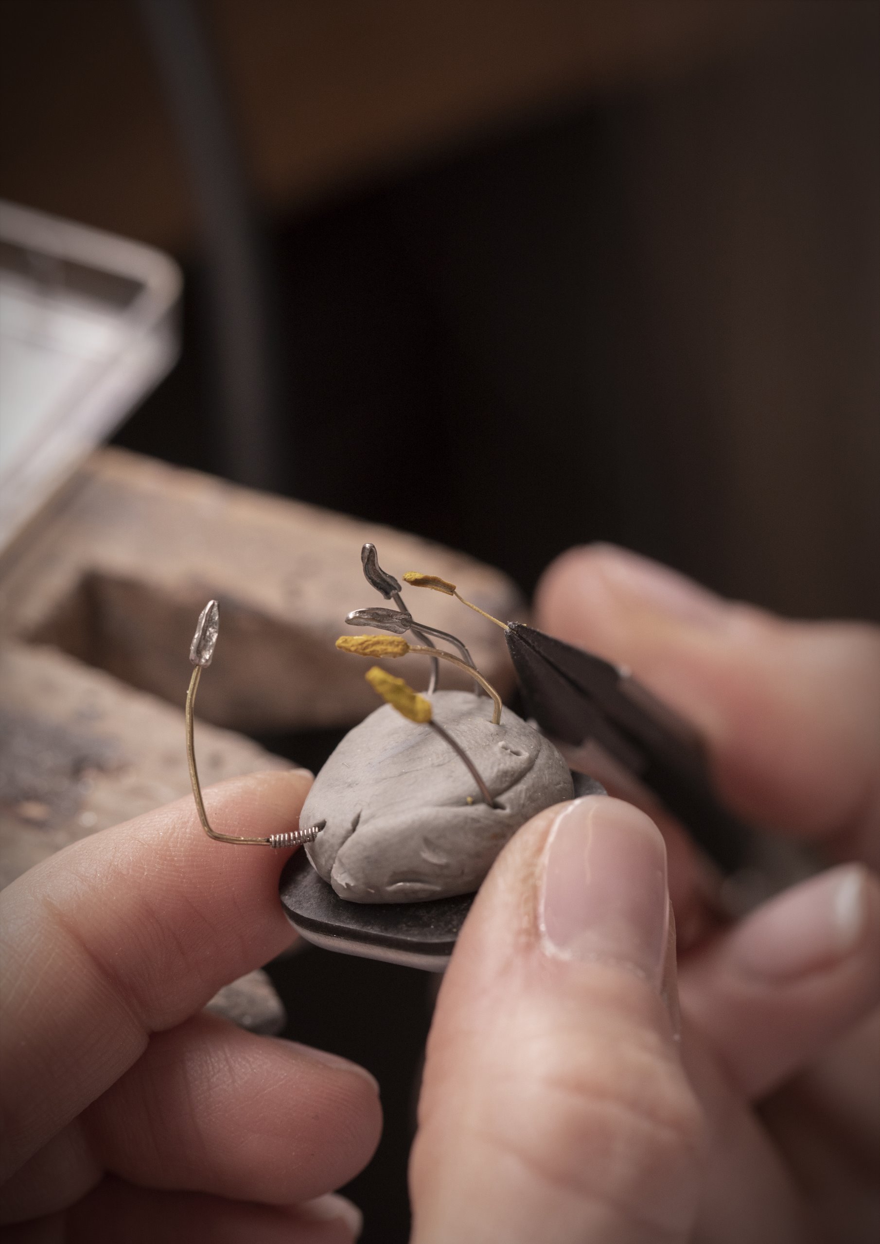 In the Chopard Haute Joaillerie workshops, one particular profession belongs to the art of sculpture: that of the jewellery model Artisan. They transform a drawing – an idea expressed in two dimensions – in order to give it a shape, a 3D existence, whether in wax or metal. In addition to being talented artists, Laura and Anthony master the history of jewellery, having learned to draw, sculpt and place shade and light in such a way as to decipher the gouache paintings provided as the starting point.