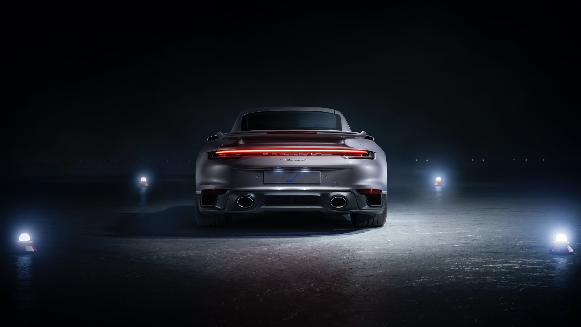 The latest generation of the Porsche 911 Turbo S is more powerful, dynamic and comfortable than ever before. It is powered by a 3.745-litre boxer engine with 478 kW (650 PS; 911 Turbo S: Fuel consumption combined 11.1 l/100 km; CO2 emissions combined 254 g/km (as of 11/2020)). The harmonious concept, which perfectly balances driving pleasure, dynamics and sportiness, can be experienced in everyday use as well as on the race track.