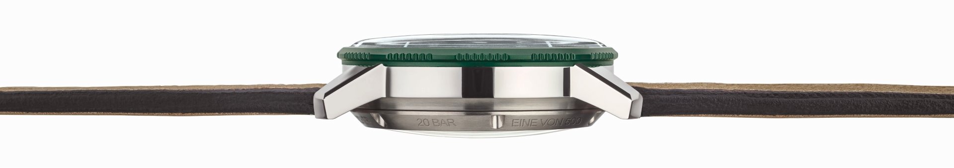 Sinn 103 Sa G is limited to 500 pieces, which is documented by the ‘Eine von 500’ (‘One of 500’) engraving on the transparent back ring. This timepiece is, of course, resistant to low pressure and waterproof and pressure-resistant up to 20 bar.