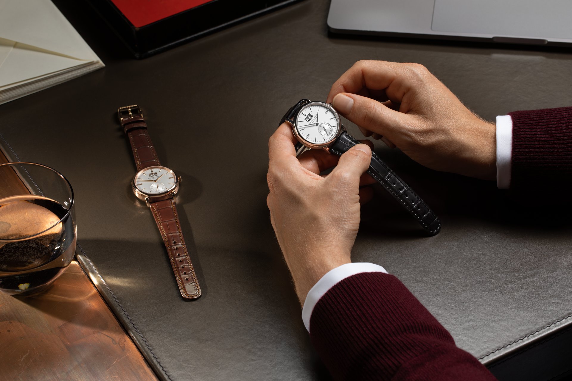 Starting in 1990, Ferdinand Adolph Lange’s great-grandson Walter Lange contributed significantly to the renaissance of Saxon precision watchmaking. When asked what characterises an A. Lange & Söhne watch, he said: “It was important to us from the very beginning to develop decidedly modern timepieces with sleek, classic looks.” In the SAXONIA OUTSIZE DATE, the true Lange style embraces numerous design details such as the chamfered and polished solid-gold baton appliques. The outsize date is another typical element featured in the launch of the first wristwatch collection in 1994, which included the first SAXONIA model. On the clearly and minimalistically designed dial with applied baton indices in solid gold, it is positioned at 12 o’clock. The subsidiary seconds dial at the 6 o’clock position counterbalances the face. With a diameter of 38.5 millimetres and a height of 9.6 millimetres, the case in white gold or pink gold exhibits classic proportions.