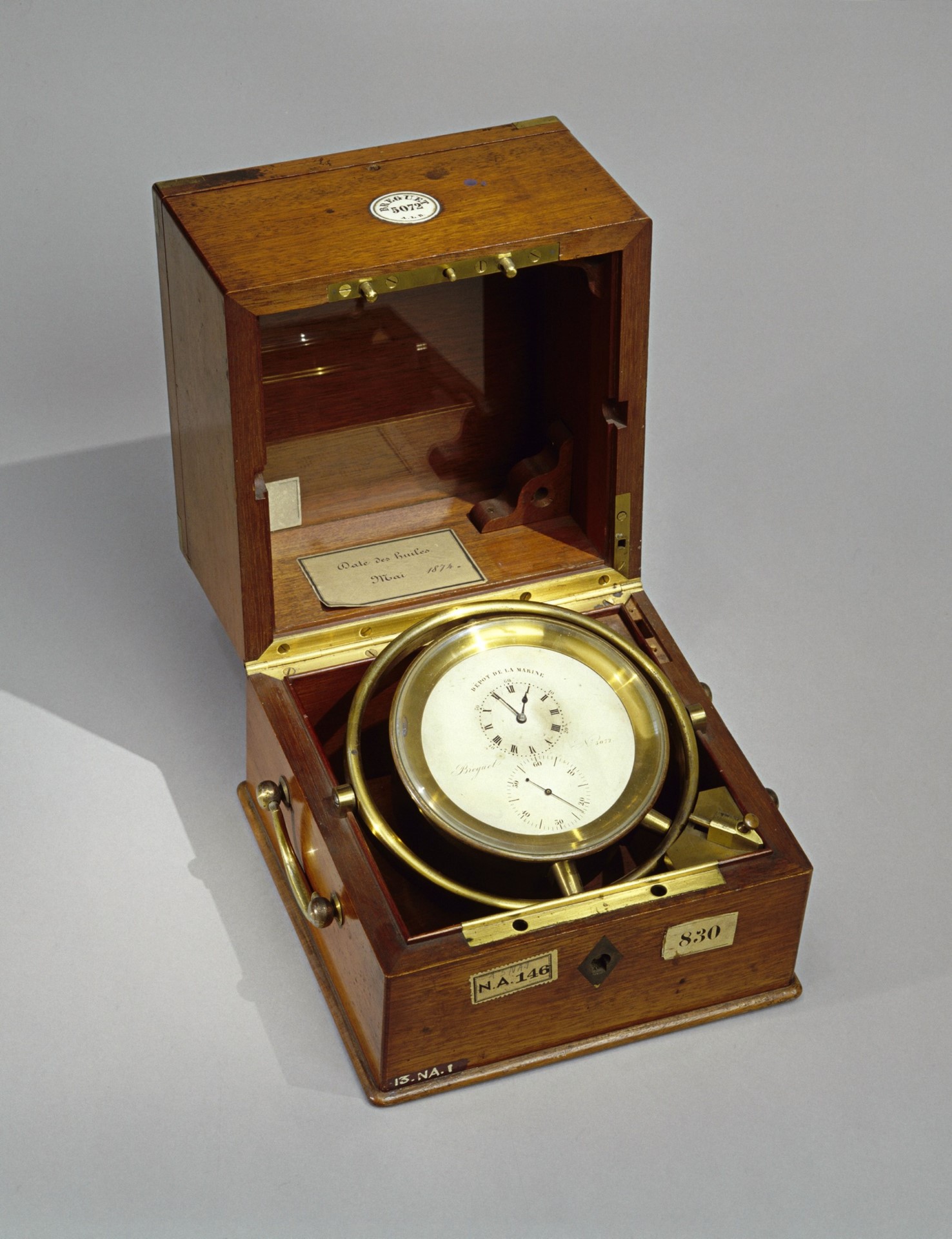 The objects on exhibition will include the naval chronometer N°5072 that was produced from 1817 to 1818 in the workshops of Abraham-Louis Breguet, founder of the House of Breguet. Throughout his decorated career, he never ceased to demonstrate his exceptional skill in time measurement. His dedication and his many inventions earned him major recognition and distinction. King Louis XVIII of France initially appointed him member of the French scientific institution Bureau des Longitudes before awarding him the official title of Watchmaker to the French Royal Navy in 1815. This is the most prestigious title a watchmaker can receive given the scientific competency implied by the very notion of naval watchmaking. It also represents a role of paramount importance to the country. At that time, naval chronometers played a crucial role for fleets, and were absolutely indispensable to the calculation of longitude at sea. Breguet devoted himself thoroughly and enthusiastically to his role as Watchmaker to the French Royal Navy; major expeditions were run using Breguet naval clocks and Breguet would supply the French Navy for almost 150 years …