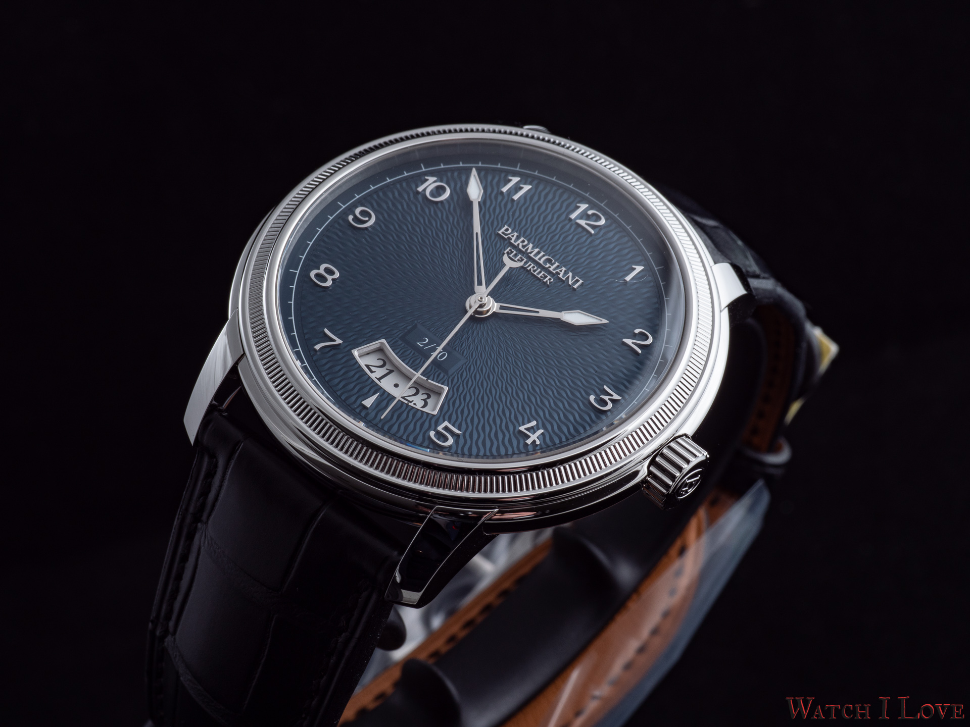 Another element on which Michel Parmigiani follows the natural organic concept is the Grain d’Orge guilloché, in blue. This organic pattern, derived from the sprouting of barley, is inspired by one of the many examples of the presence in the natural world of the Fibonacci sequence – excerpt from the official press release.
