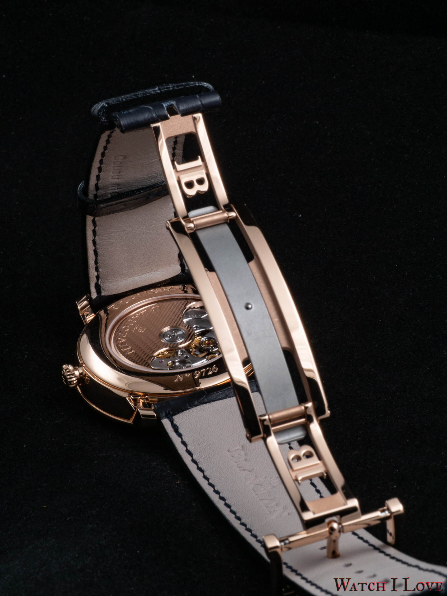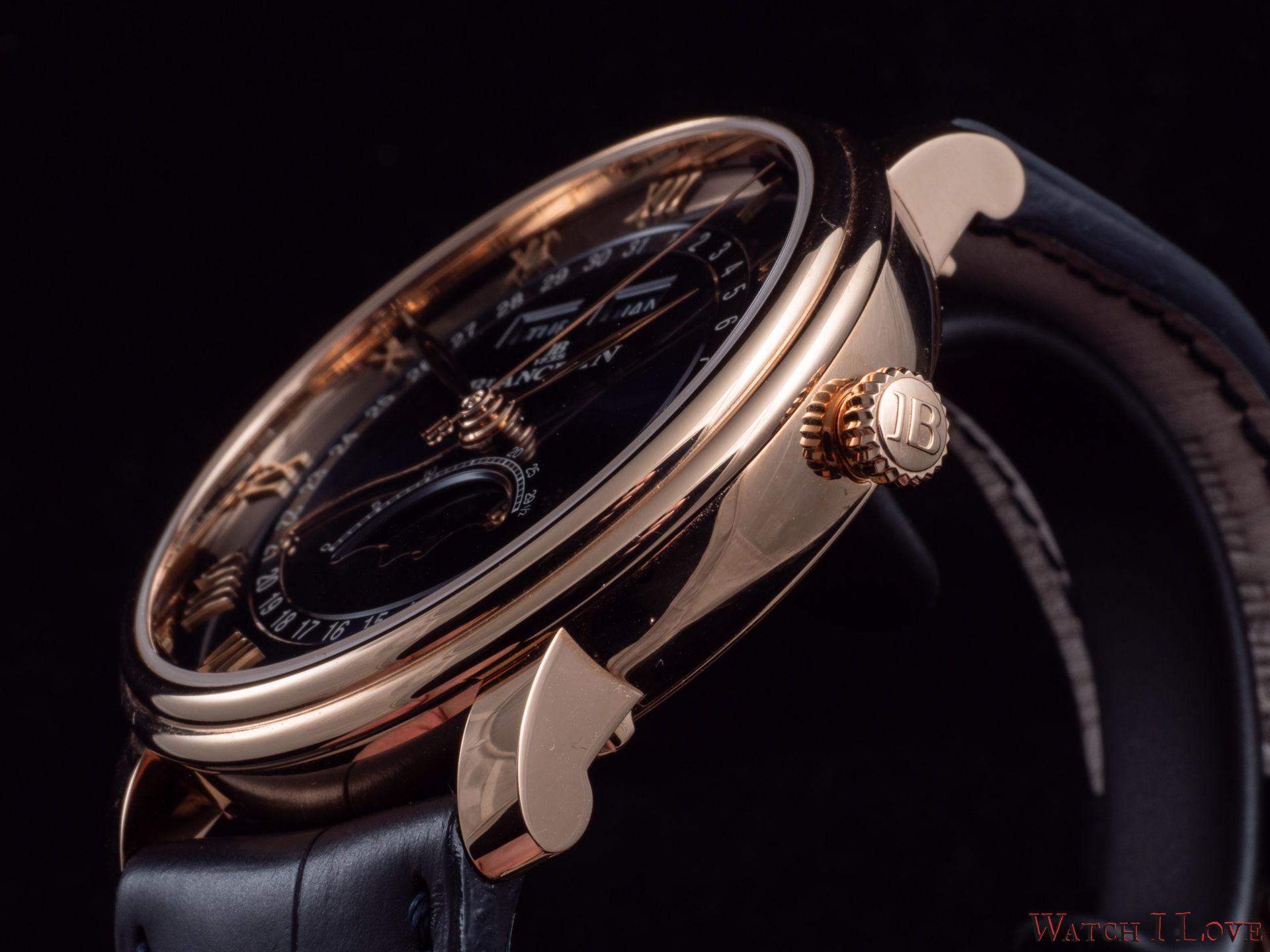 But the most important feature of this calibre and a very useful implementation in the Quantième Complet line is the ease of set and manipulation of the calendar function. First, the calendar functions are secured in the way the wearer is safe from damaging the calendar due to manipulation at the “wrong” moments in time (usually between 10 pm to 2 am). Secondly, all the annoying pushers placed on the case body are removed. If you have a look at the movement pictures above, you can notice the presence of the 4 pushers. These are hidden on the exterior of the watch behind the lugs. Please have a closer look at the picture below, focusing on the lugs – there you will observe the smart mechanically and visually elegant implementation of the calendars actuators.