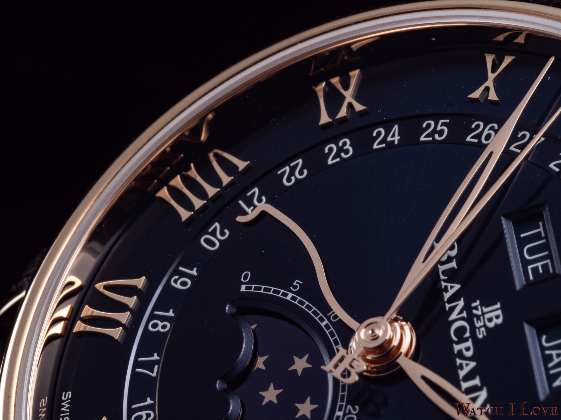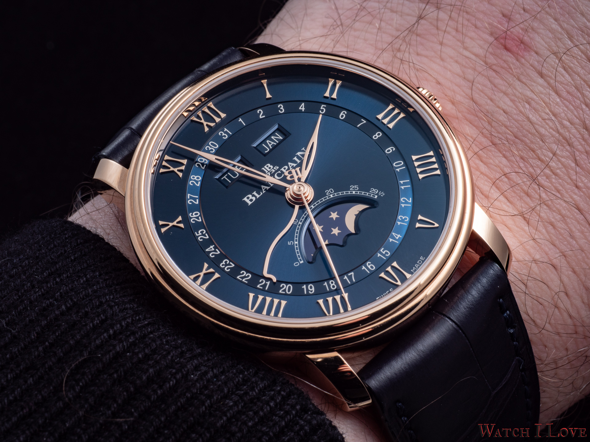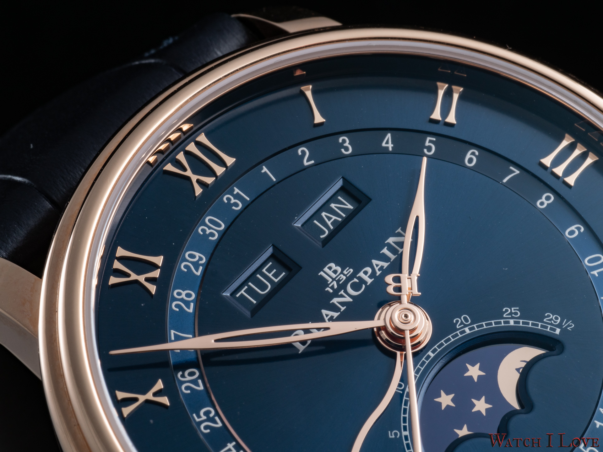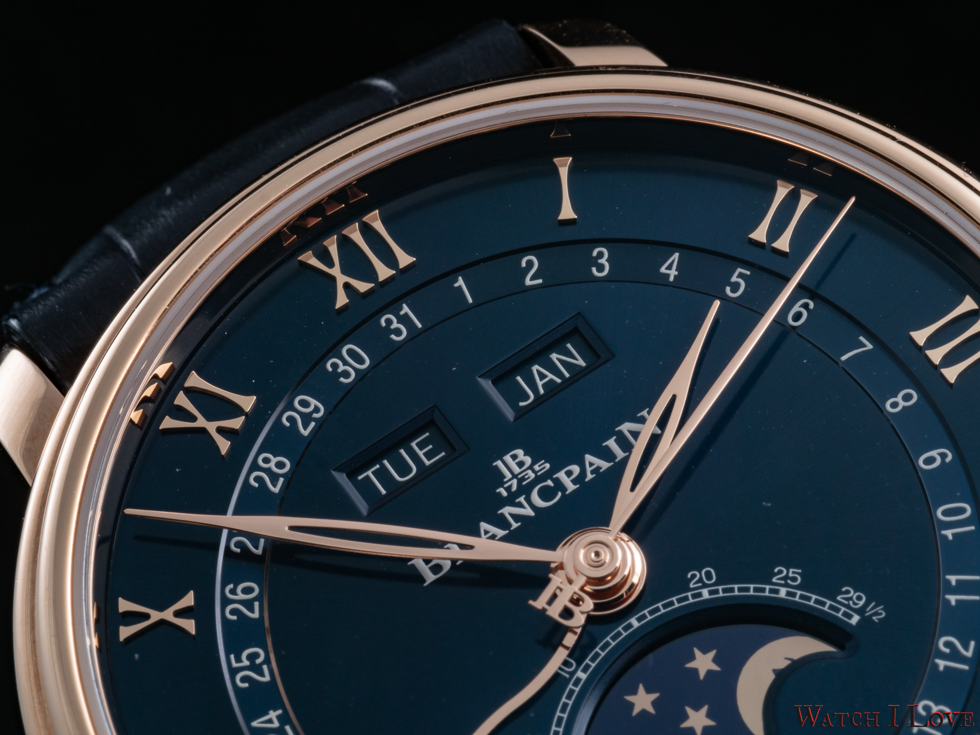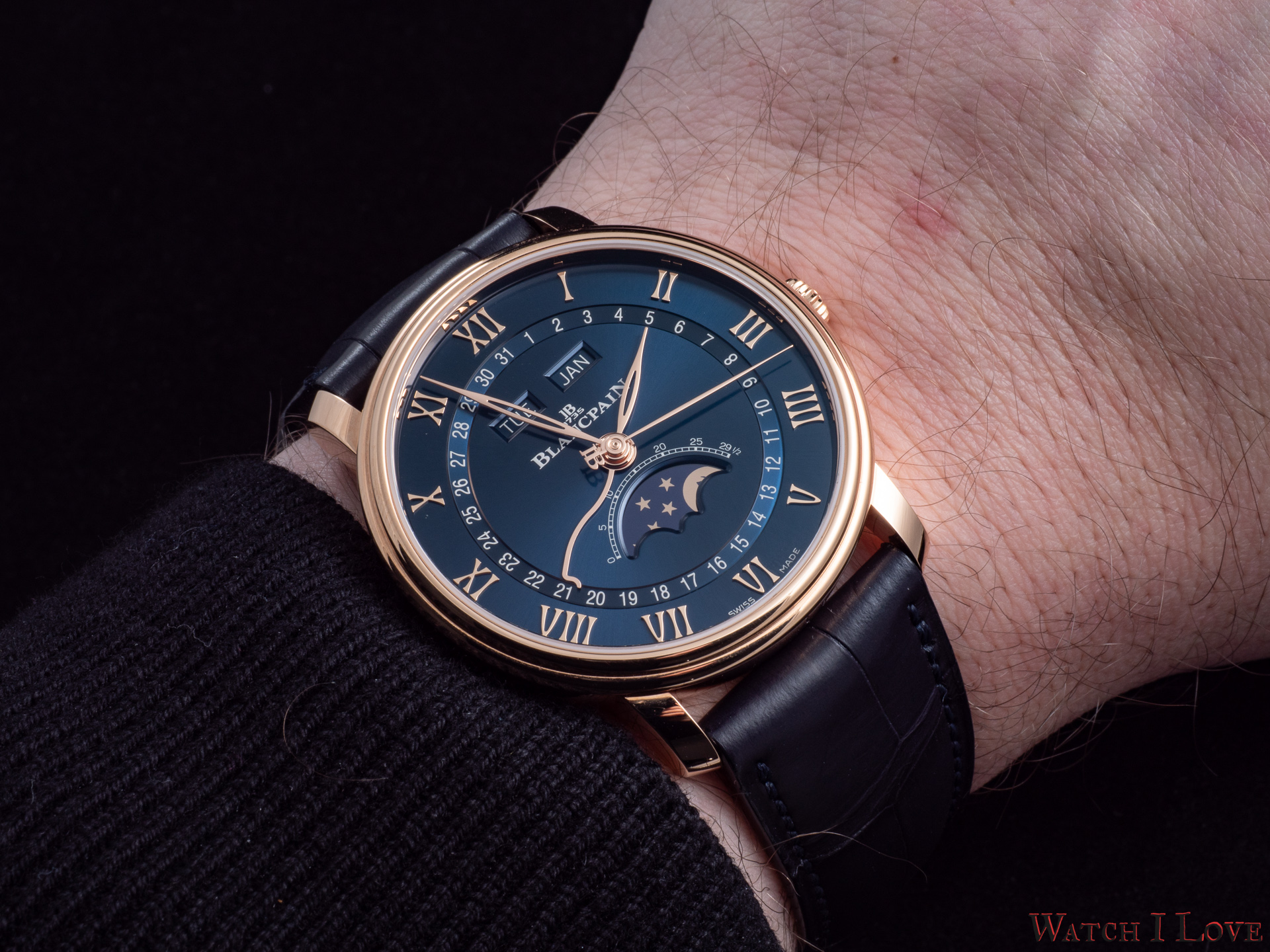 I find complete calendars practical in daily life. Of course, the perpetual ones are attractive, but also are more sensible and need special care (and even a visit to watchmakers in case of mishandling or overset). Blancpain‘s Villeret Quantième Complet proposal is a robust and elegant watch.