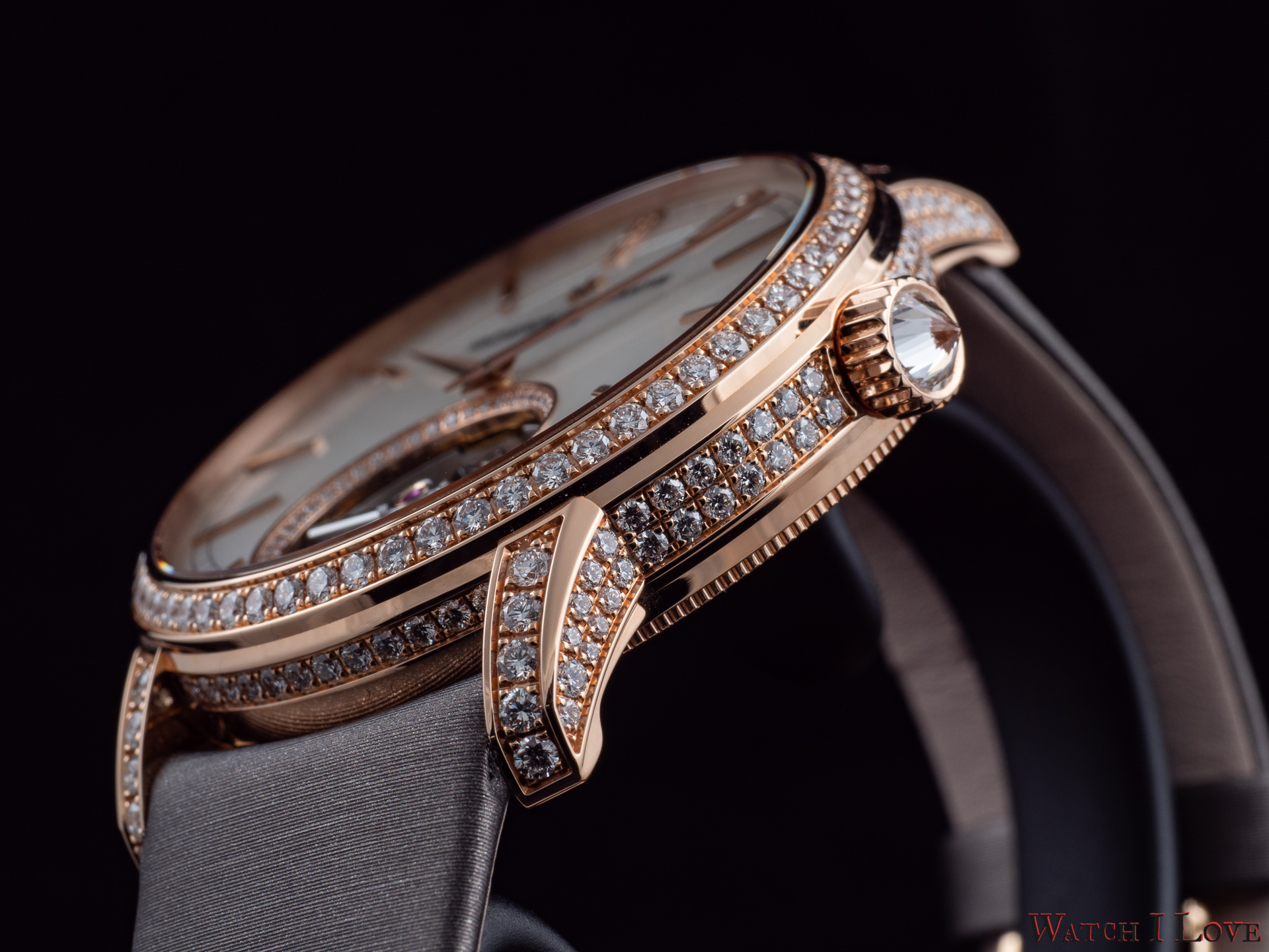 The Traditionnelle Tourbillon is the first ladies watch by Vacheron Constantin to feature a tourbillon automatic movement. Using a thin movement, the brand managed to build a watch with relatively small dimensions.