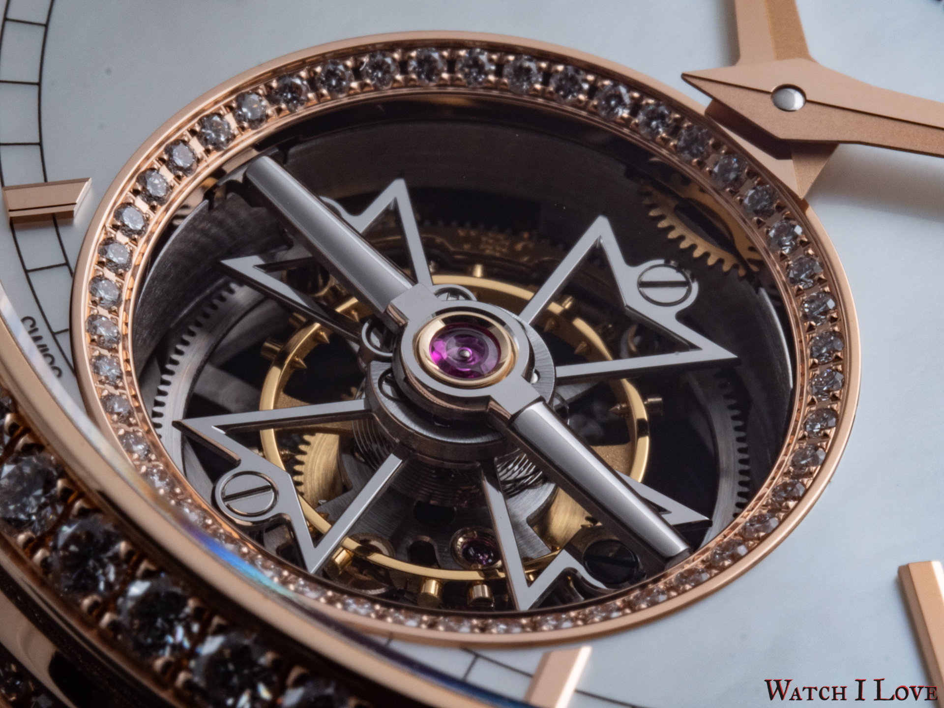 The 5.65 mm thick movement packs an impressive 80 hours power reserve depleted by the relative slow 2.5 Hz oscillator. The video at the beginning of the article features a fast motion of the tourbillon.