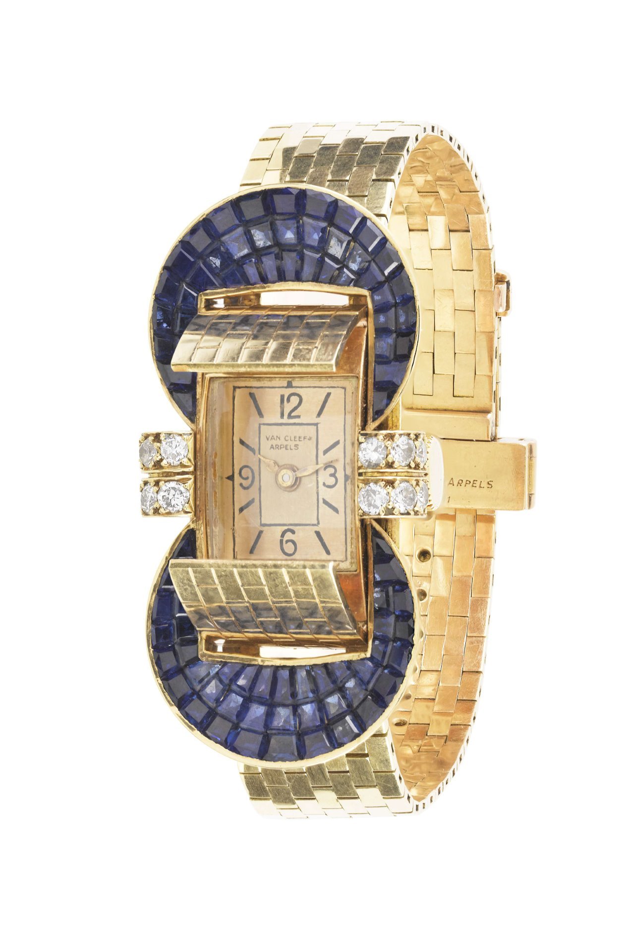 Ludo watch bracelet with flaps, 1949 Yellow gold, Mystery Set sapphires, diamonds Van Cleef & Arpels Collection