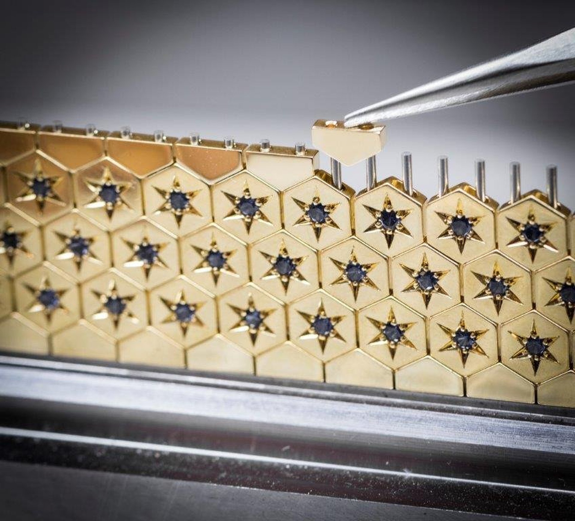 Using gold to reinterpret the fluidity of fabric presented the Maison’s workshops with a real technical challenge. To create the impression of a delicate weave, the watches’ hexagonal motifs were carefully assembled and individually adjusted by hand, for the best possible articulation.