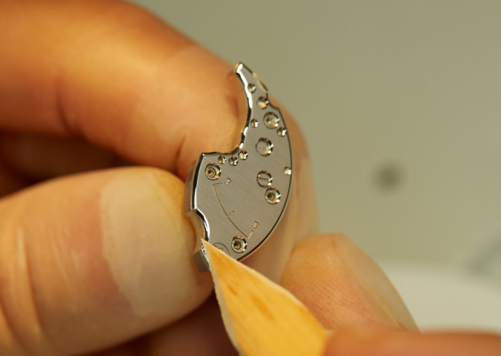 The dial has a gentle curve thanks to the careful application of the porcelain glaze which creates surface tension, giving it a slightly domed shape. The very nature of porcelain leads to the glaze being slightly thinner at the edge and centre of the dial so that, as light plays across each dial, it reveals its own particular shades and tones.