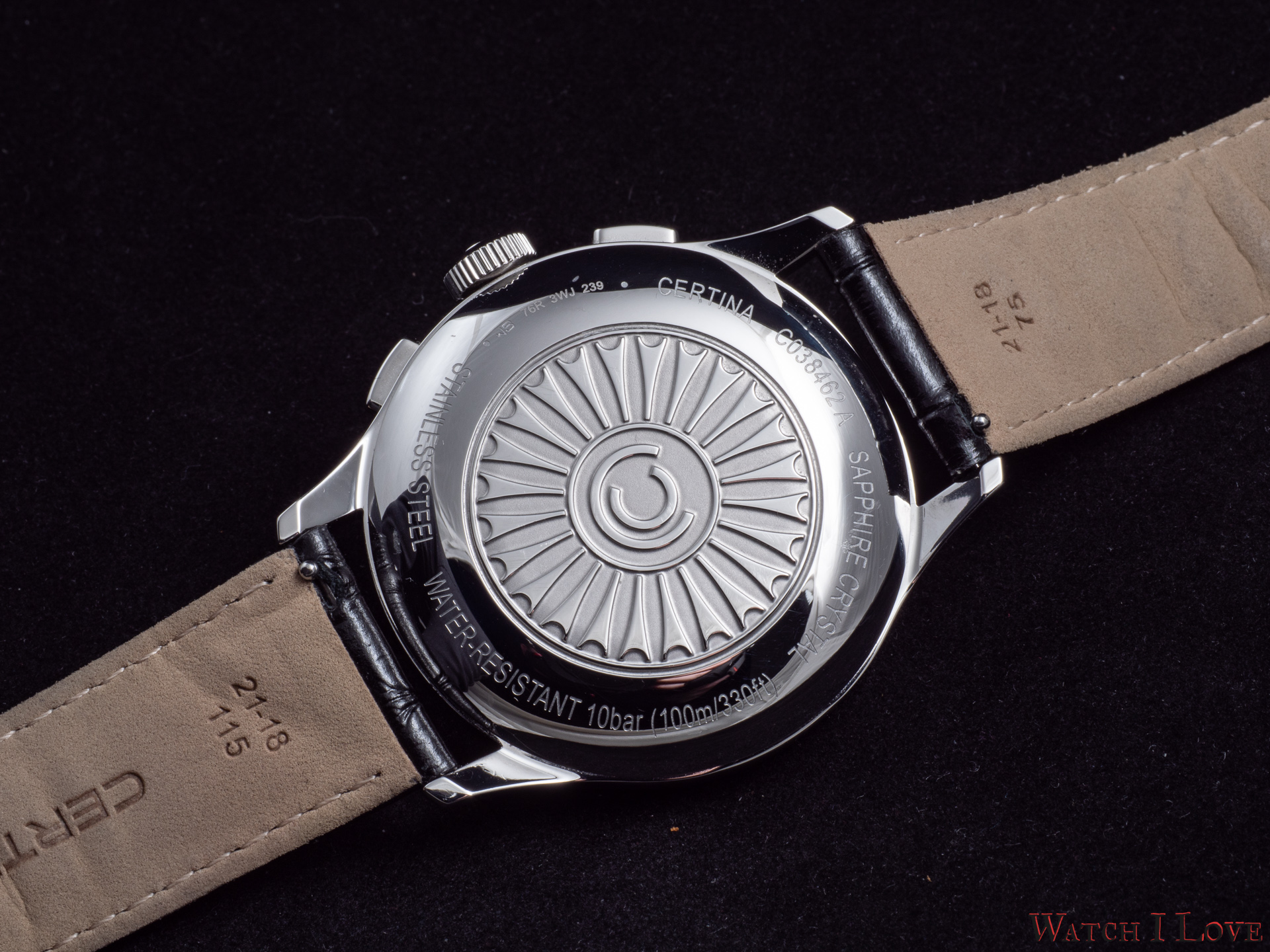 Certina chose for this watch a calibre based in the Valjoux 7753 – the ETA A05.H31. This movement was updated and modernised with a silicon balance spring. Calibre ETA A05.H31 offers an impressive power reserve of 60 hours. Unfortunately, the movement is not revealed, being covered by a solid caseback.