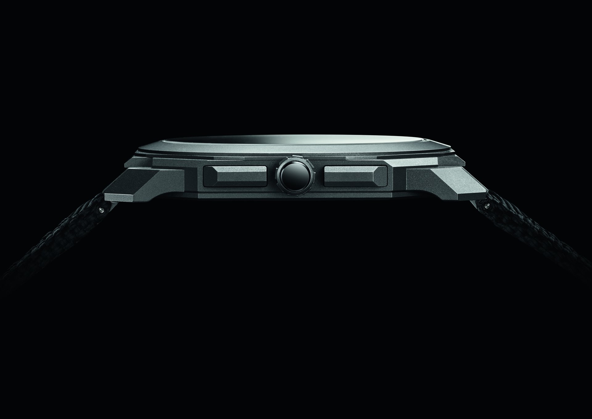 42 mm extra-thin sandblasted titanium case (6.90 mm thick) with transparent case back; sandblasted titanium crown set with ceramic; black opaline dial; water-resistant up to 30 meters.