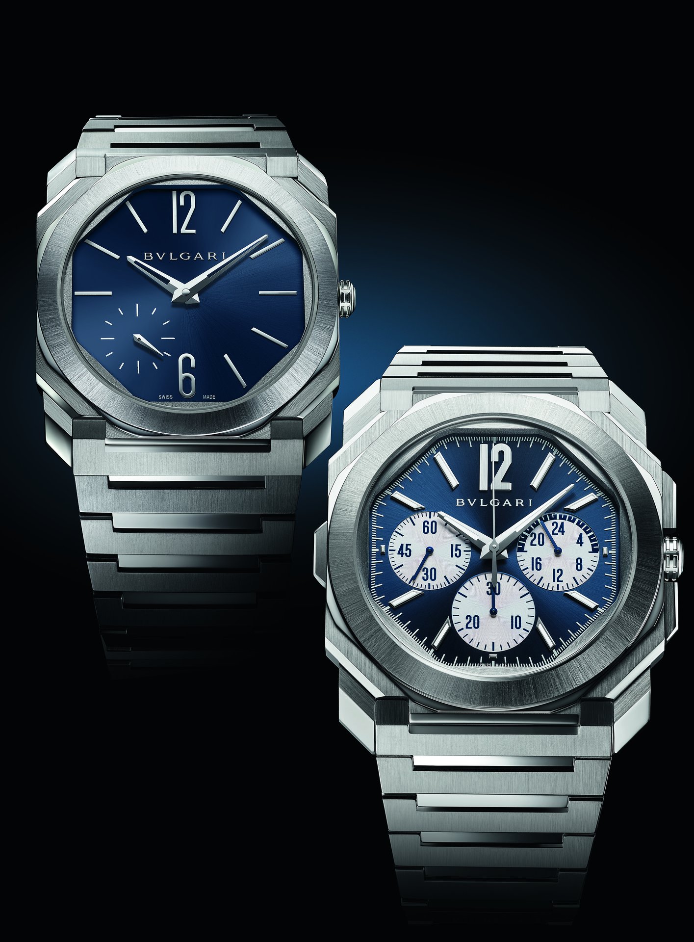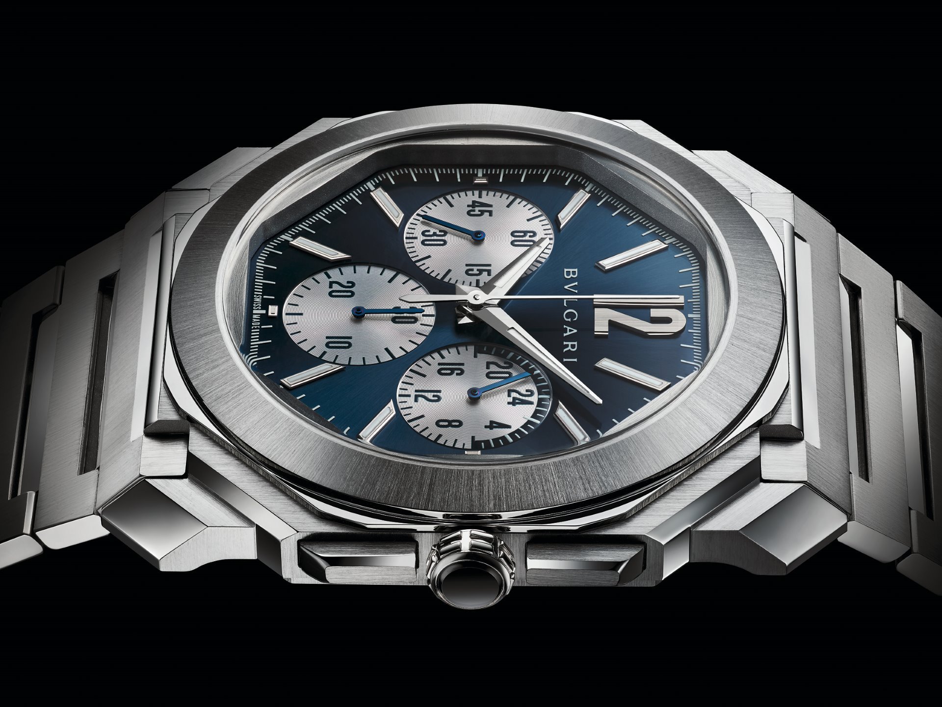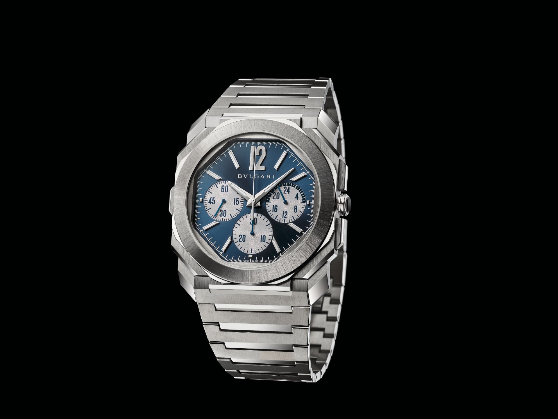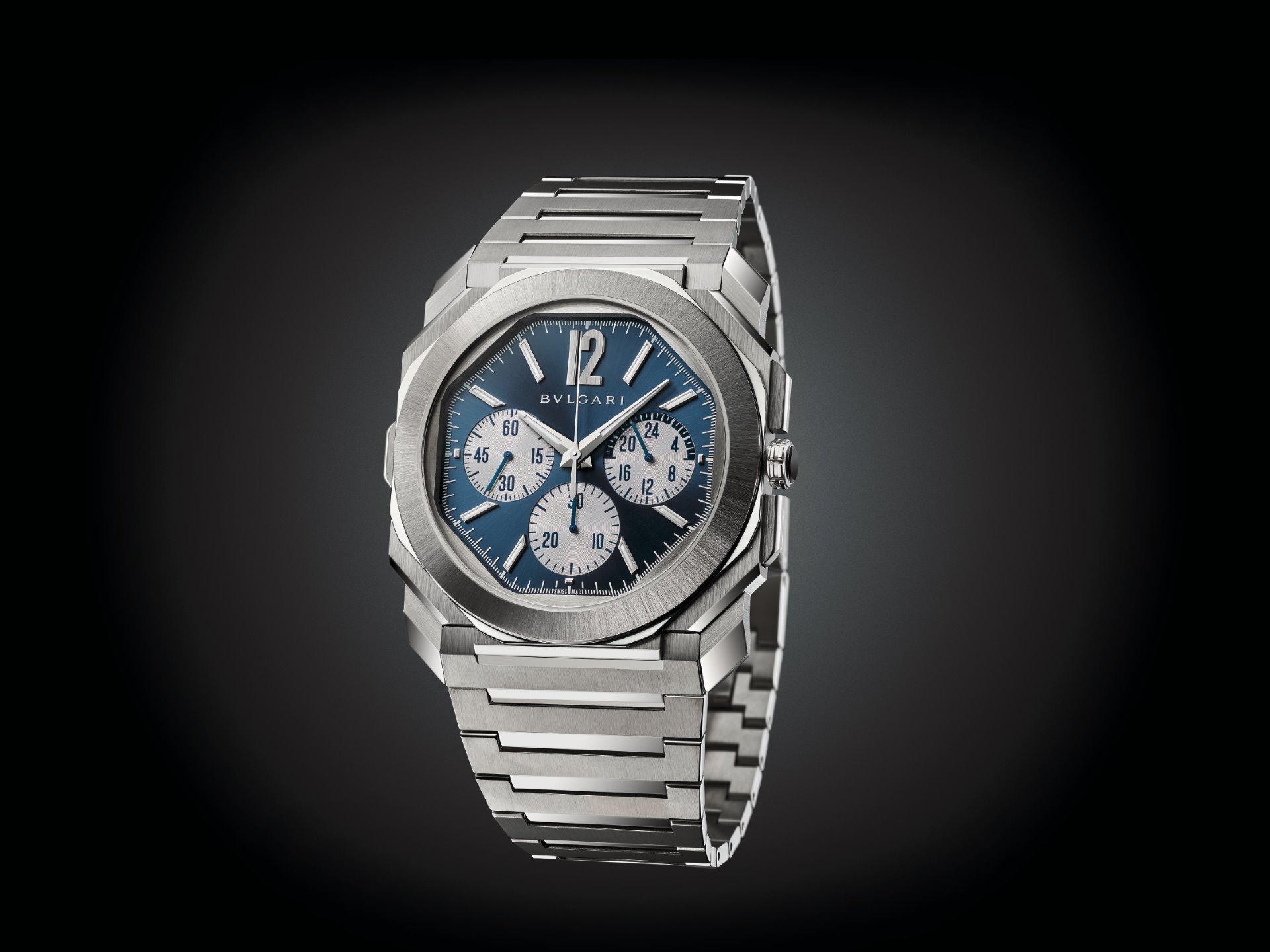 This year Bvlgari further expands its Octo Finissimo S line with the new Octo Finissimo S Chronograph GMT, equipped with the automatic in-house chronograph and GMT ultra-thin calibre BVL 318 with peripheral rotor (3.30 mm thick).