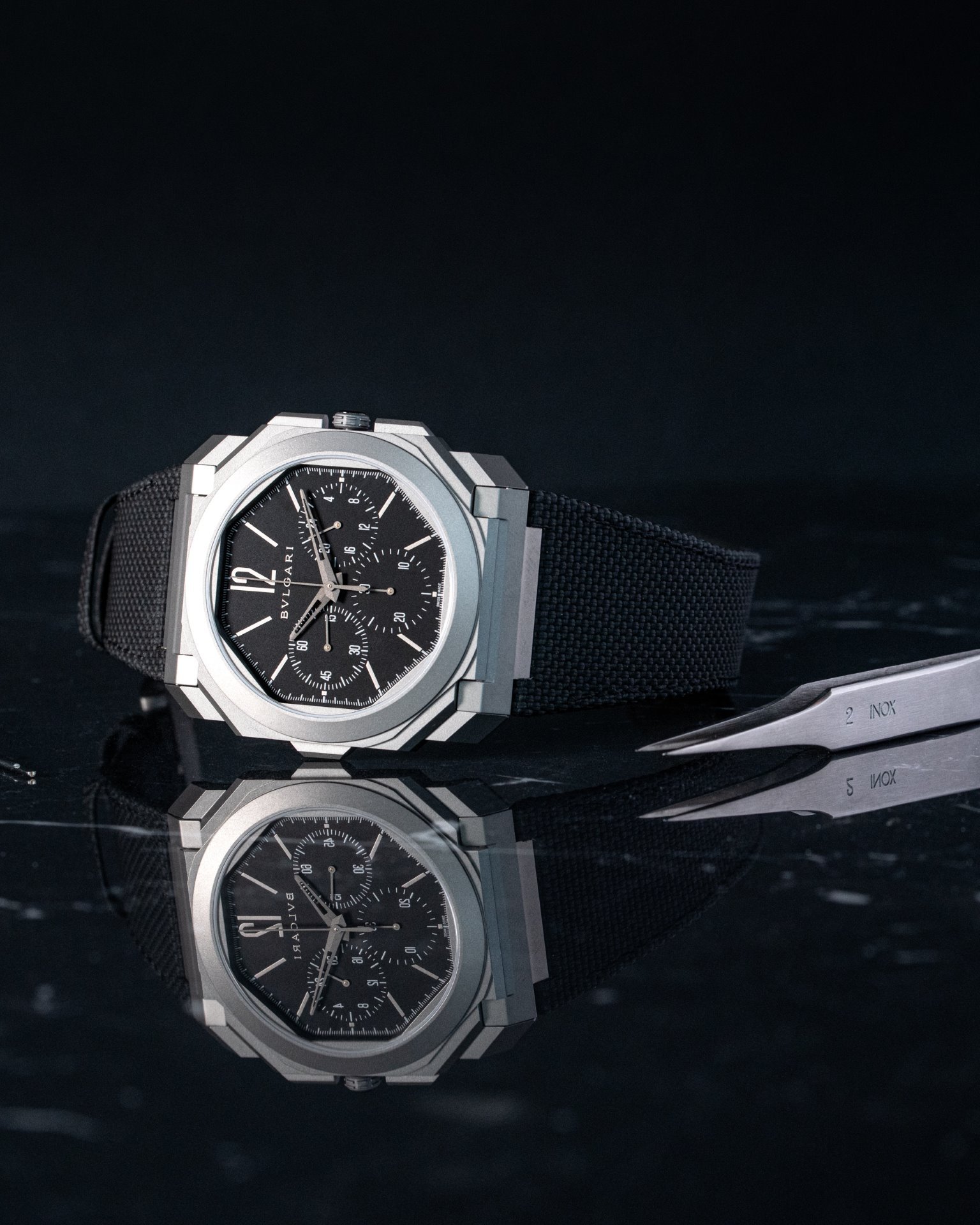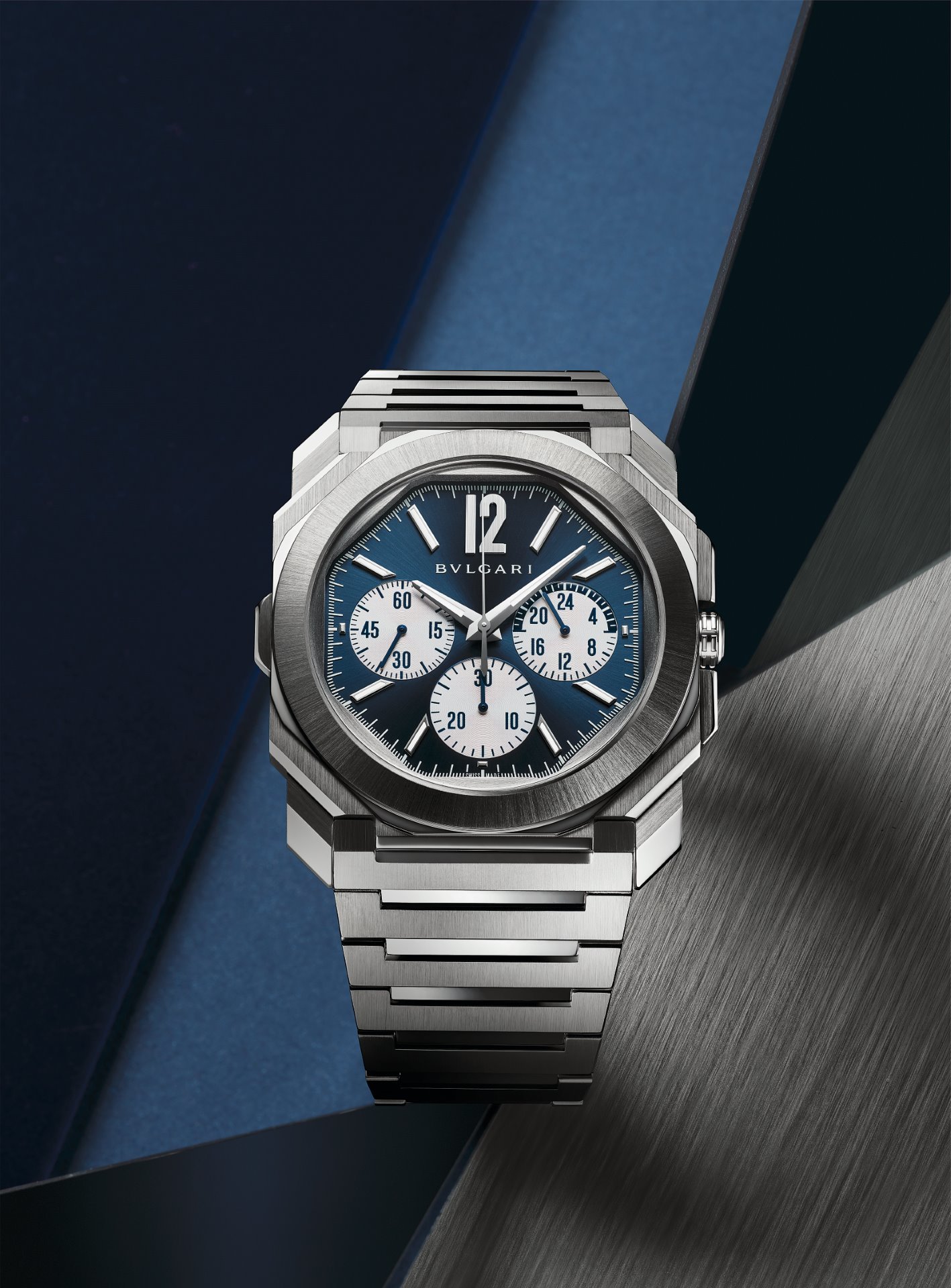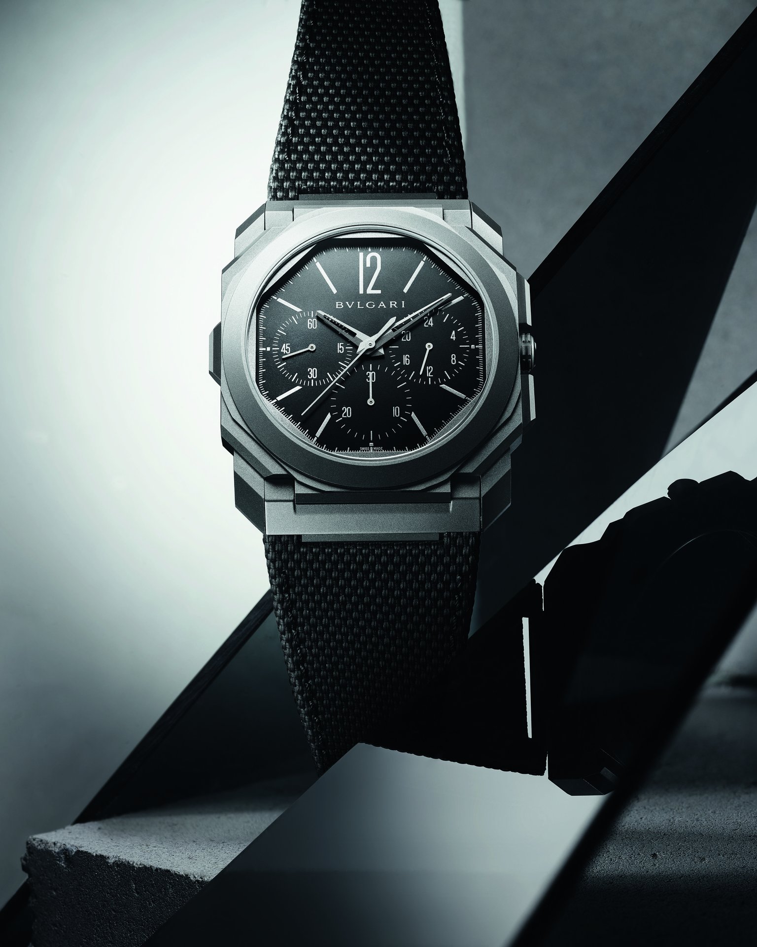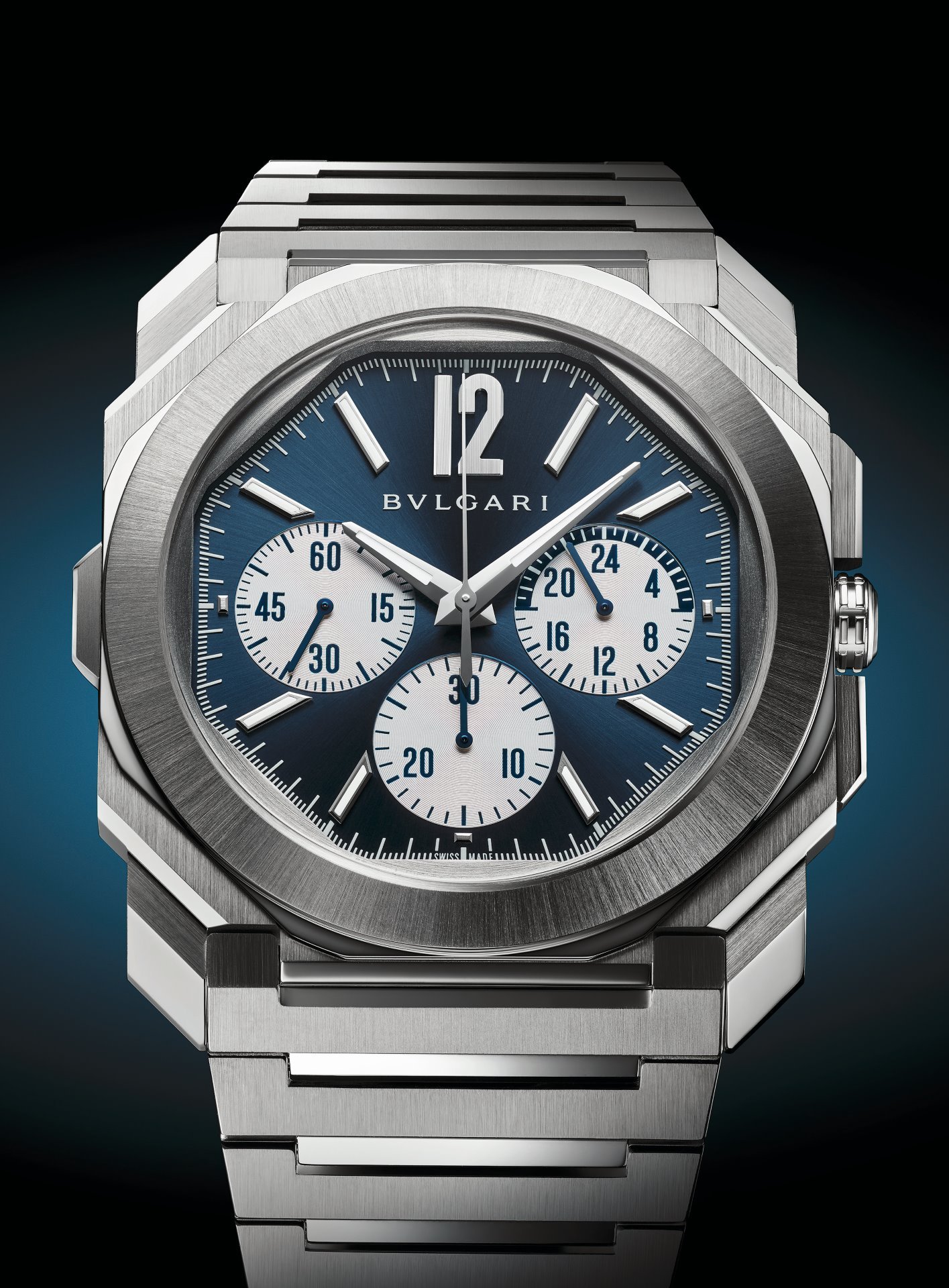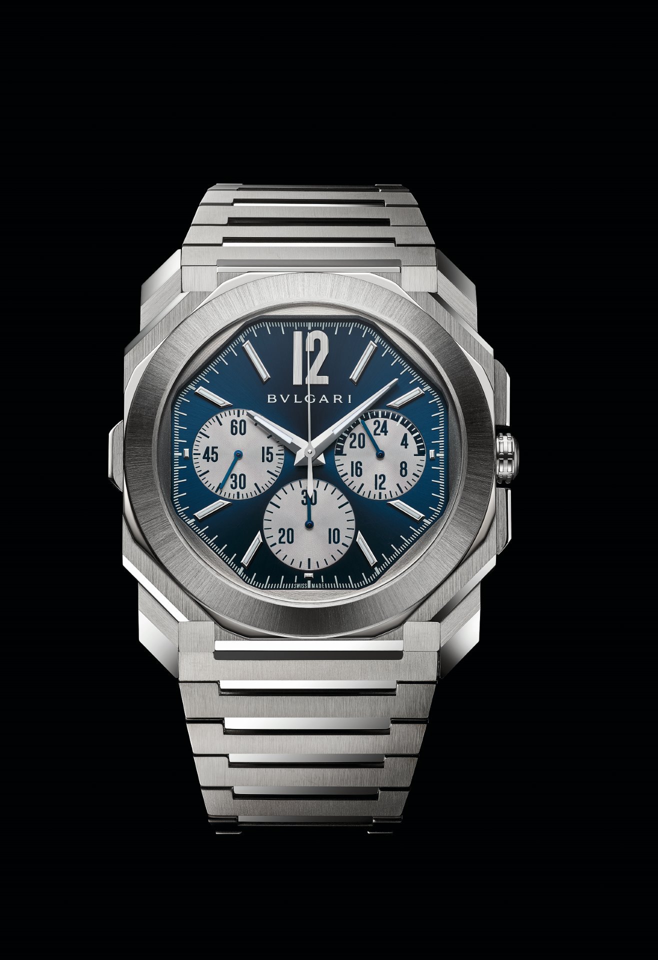 This year Bvlgari further expands its Octo Finissimo S line with the new Octo Finissimo S Chronograph GMT, equipped with the automatic in-house chronograph and GMT ultra-thin calibre BVL 318 with peripheral rotor (3.30 mm thick).