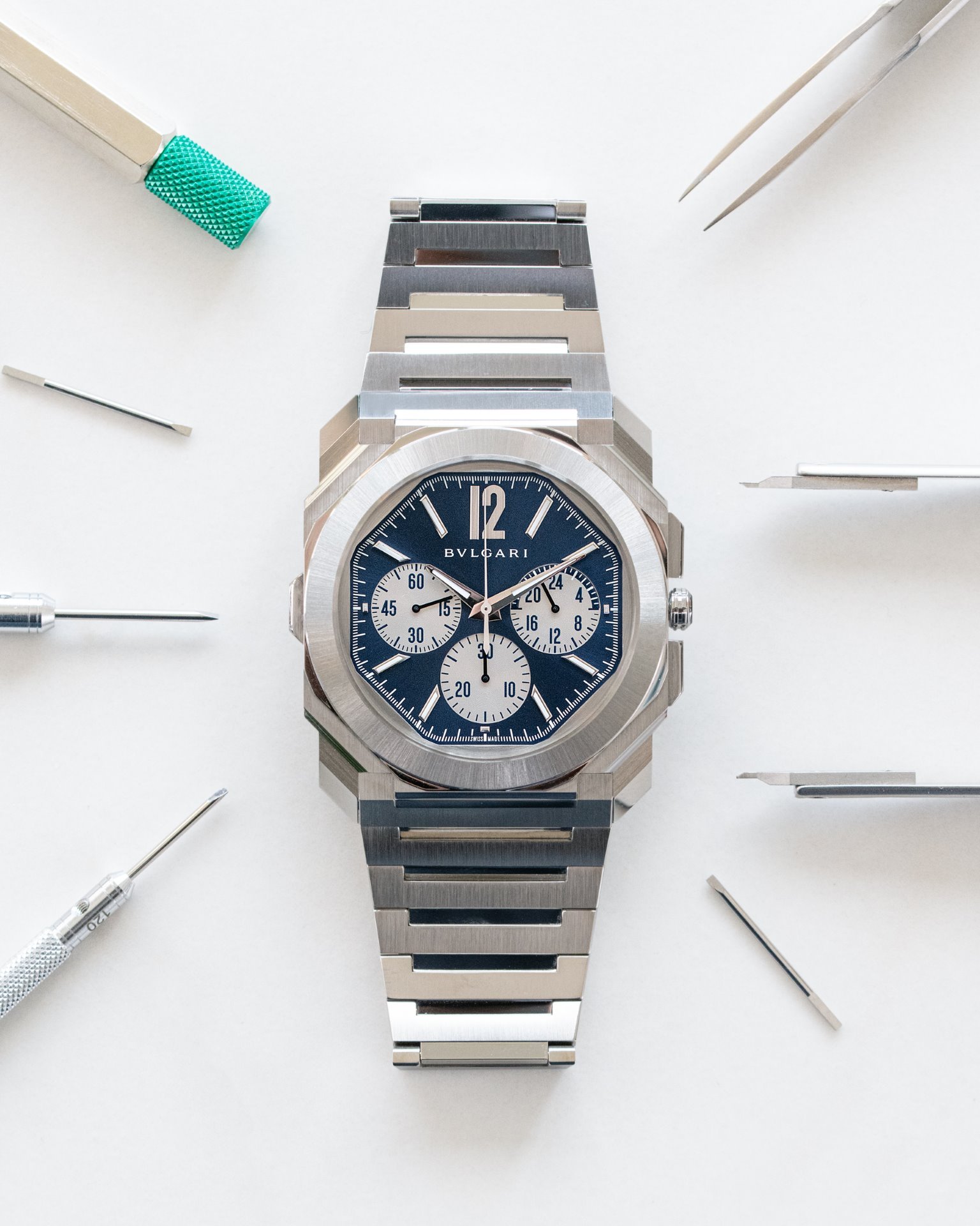 In 2020, Bvlgari Octo Finissimo disrupted the luxury sport watch segment with the introduction of the Octo Finissimo S, a stainless-steel design featuring the thinnest automatic movement and a water resistance of 100 meters, made possible by increasing the case just slightly to 6.4mm and adding a screw-down crown.