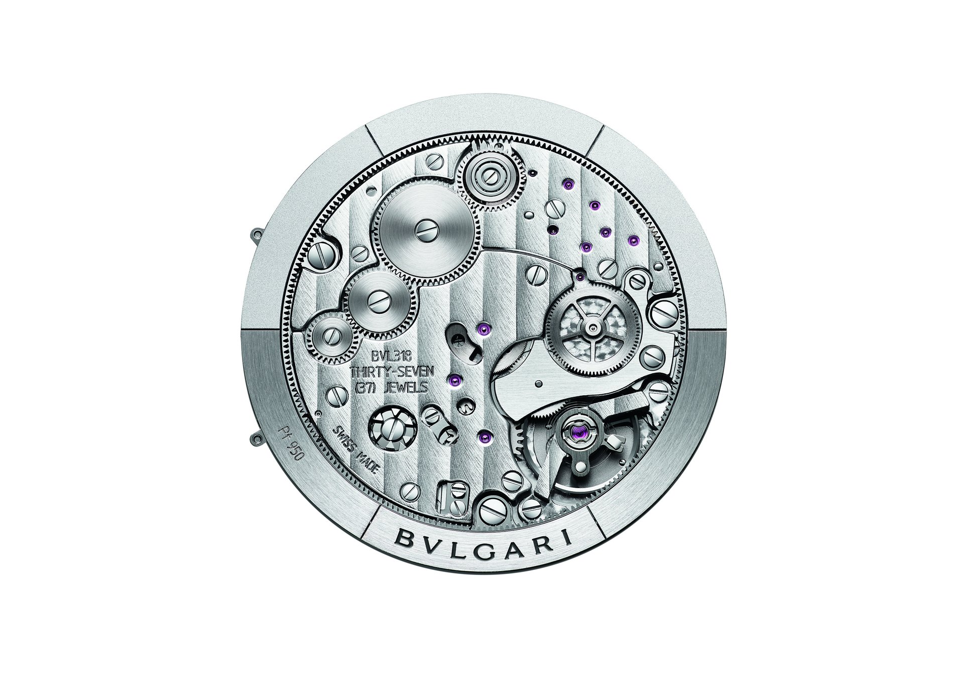 Mechanical Manufacture movement with automatic winding via a platinum micro-rotor, hours, minutes and small seconds indications. BVL138 Finissimo caliber (2.23mm thick) adorned with Côtes de Genève stripes, chamfered bridges and circular-grained baseplate, 60-hour power reserve, 21,600 VpH.