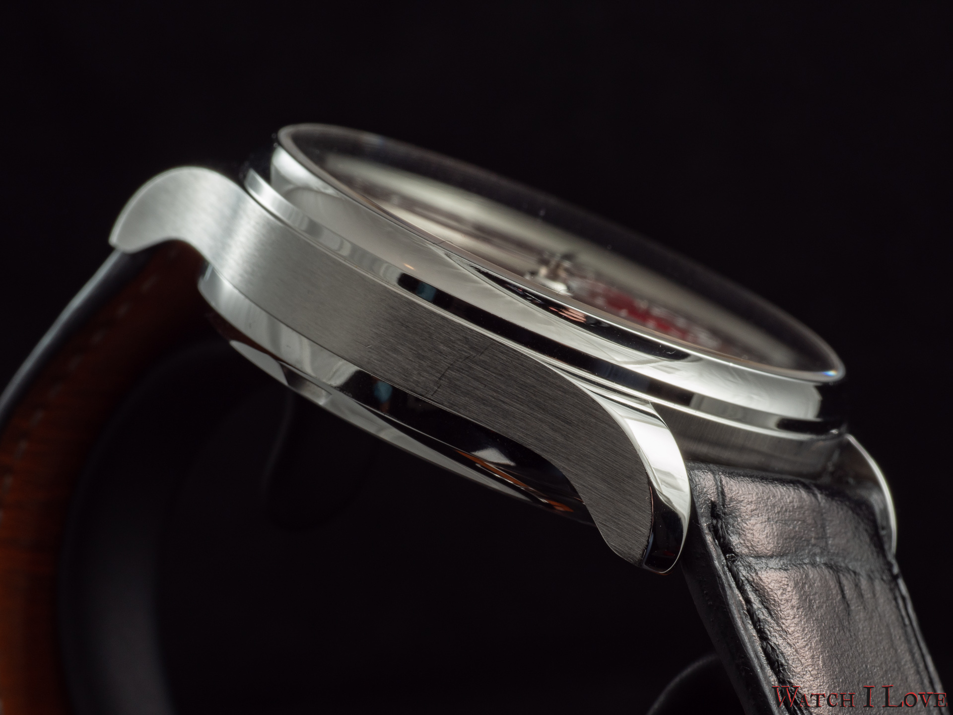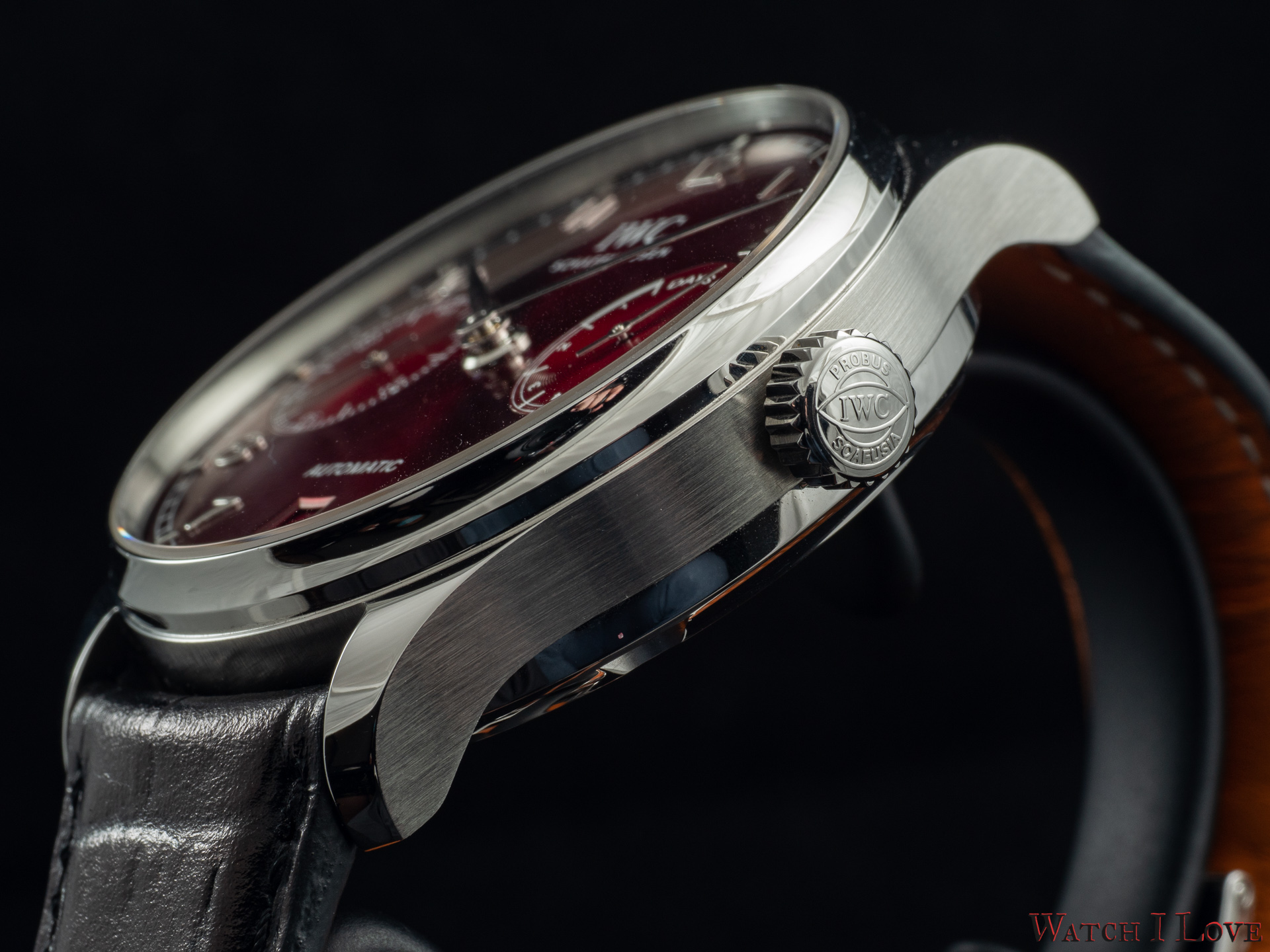The sub-dials are decorated with the usual circular pattern. The recessed indications bite a big chunk of the rhodium-plated applied numerals. The leaf hands contribute to the traditional look of the Portugieser’s face.