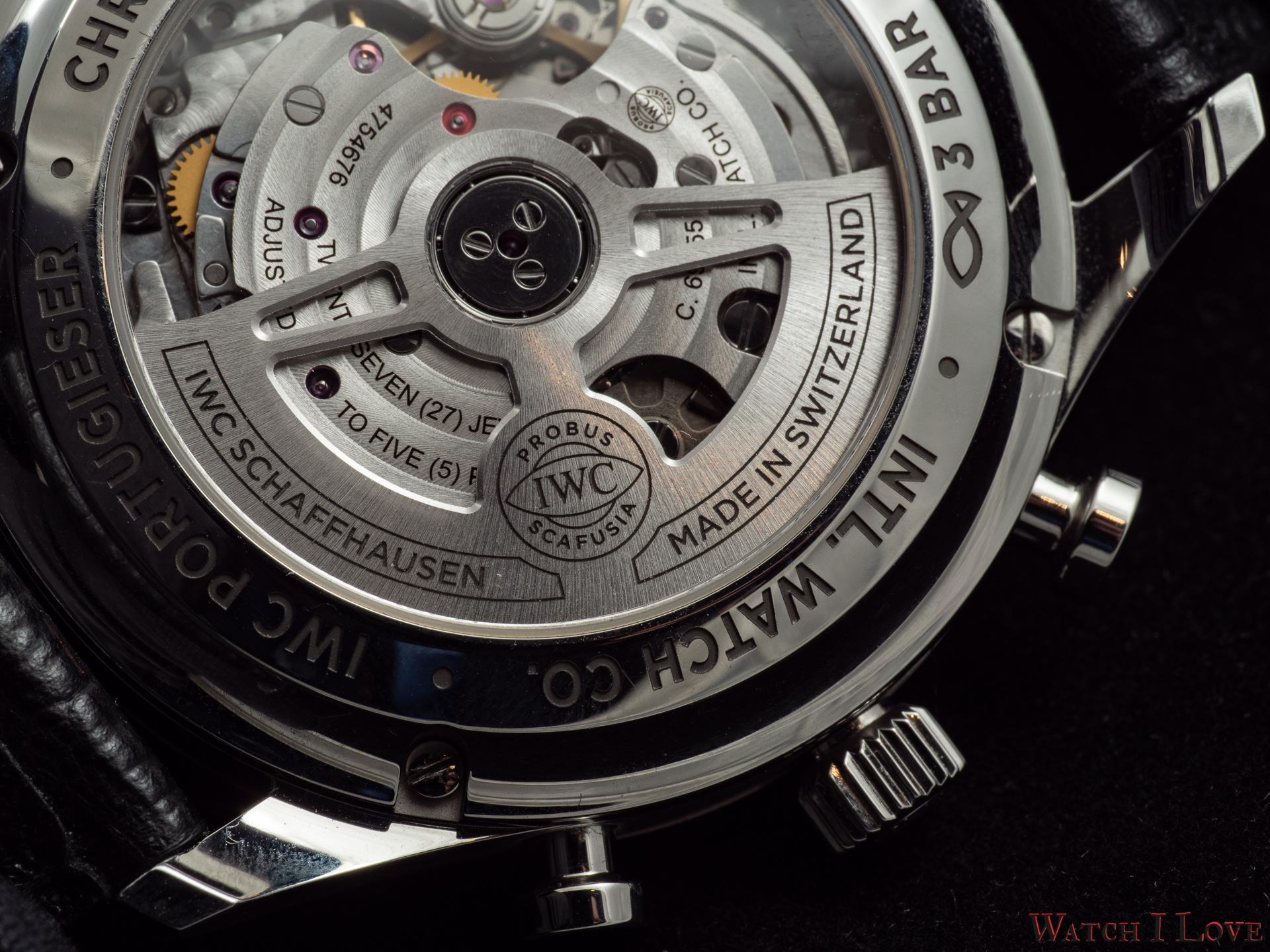 As expected, the calibre 52010 is nicely decorated under the typical IWC style. The movement offers well-defined details. The aired construction and wide opened bridges not only the pride but also the serious commitment of the brand to offer a rather charming spectacle.