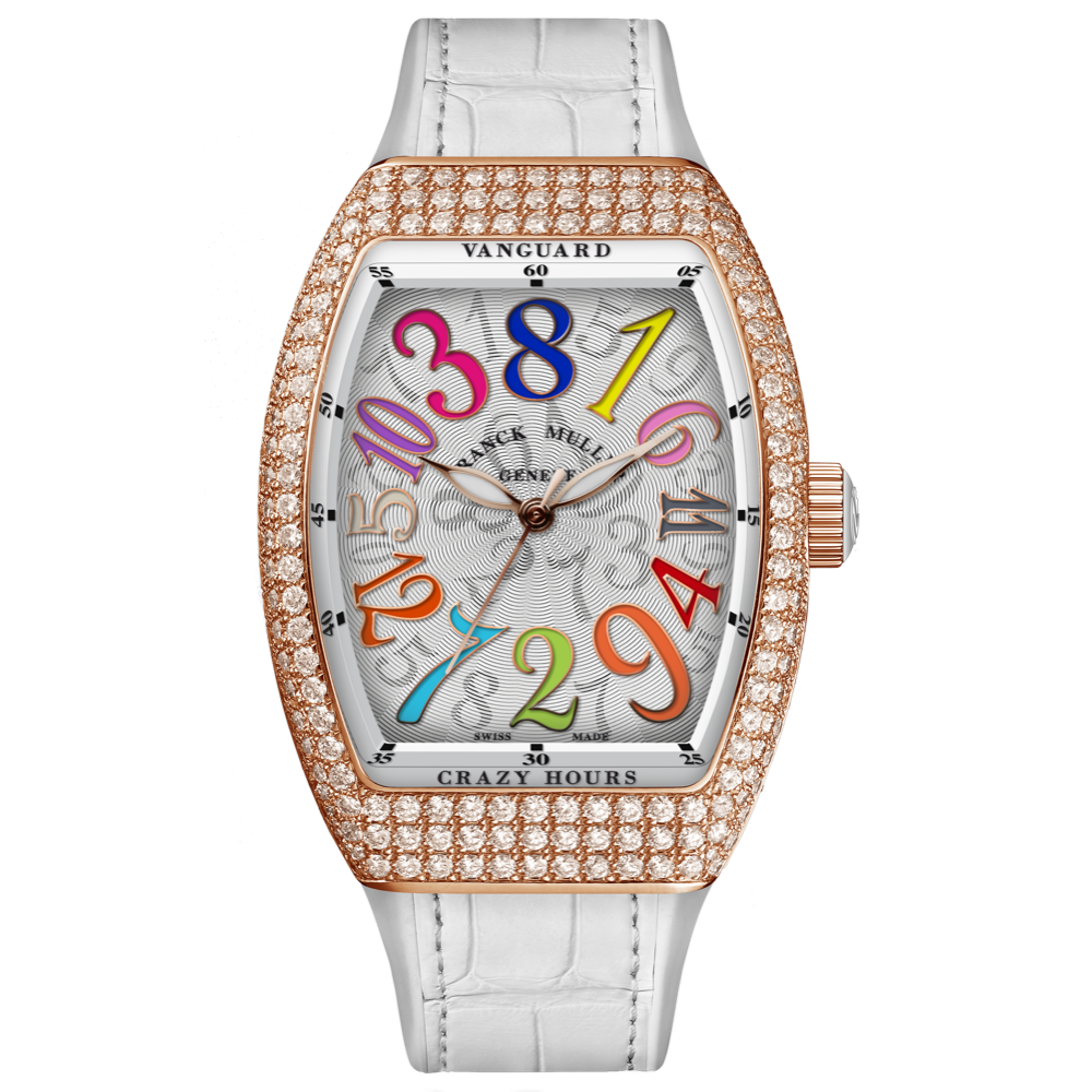 The Franck Muller Vanguard Crazy Hours complication offers a unique reading of time. Thanks to a patented mechanism, the central hour hand literally jumps from one hour to the next.
