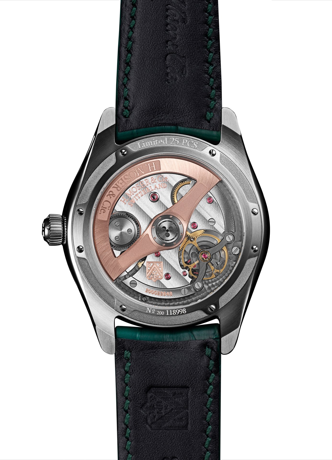 - Steel pin buckle, engraved with the H. Moser & Cie. logo