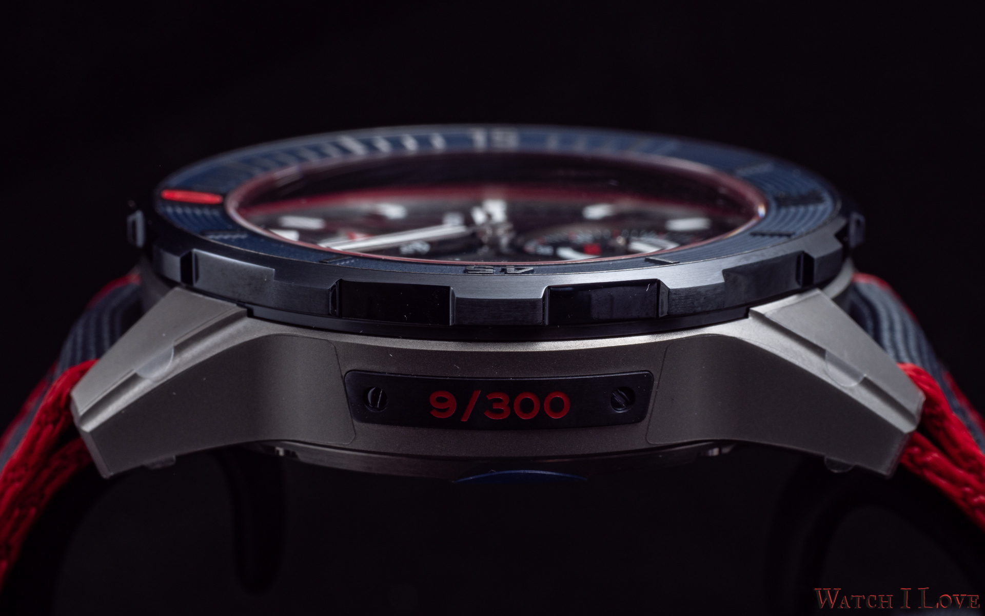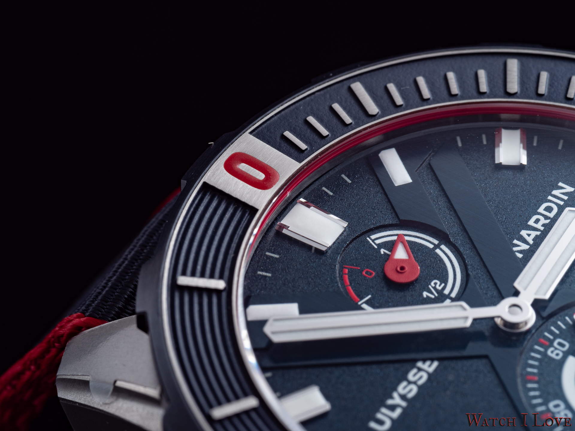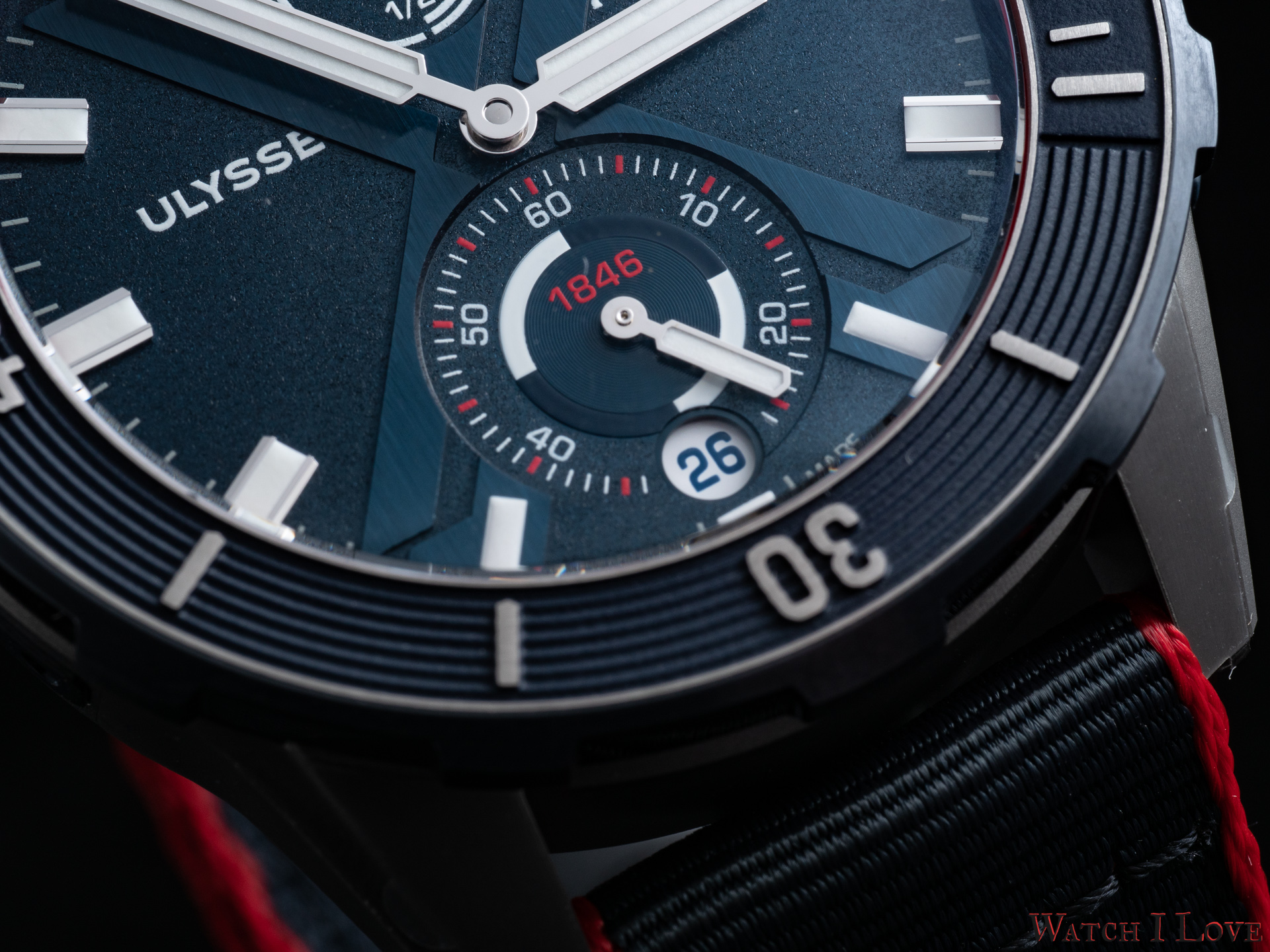The dial is virtually the same. A composite base with embossed details, including the central “X”, obtained by stamping. The red accents also are presents on the dial. We find the attention to details focused on the various dial elements – note the blue date printing.