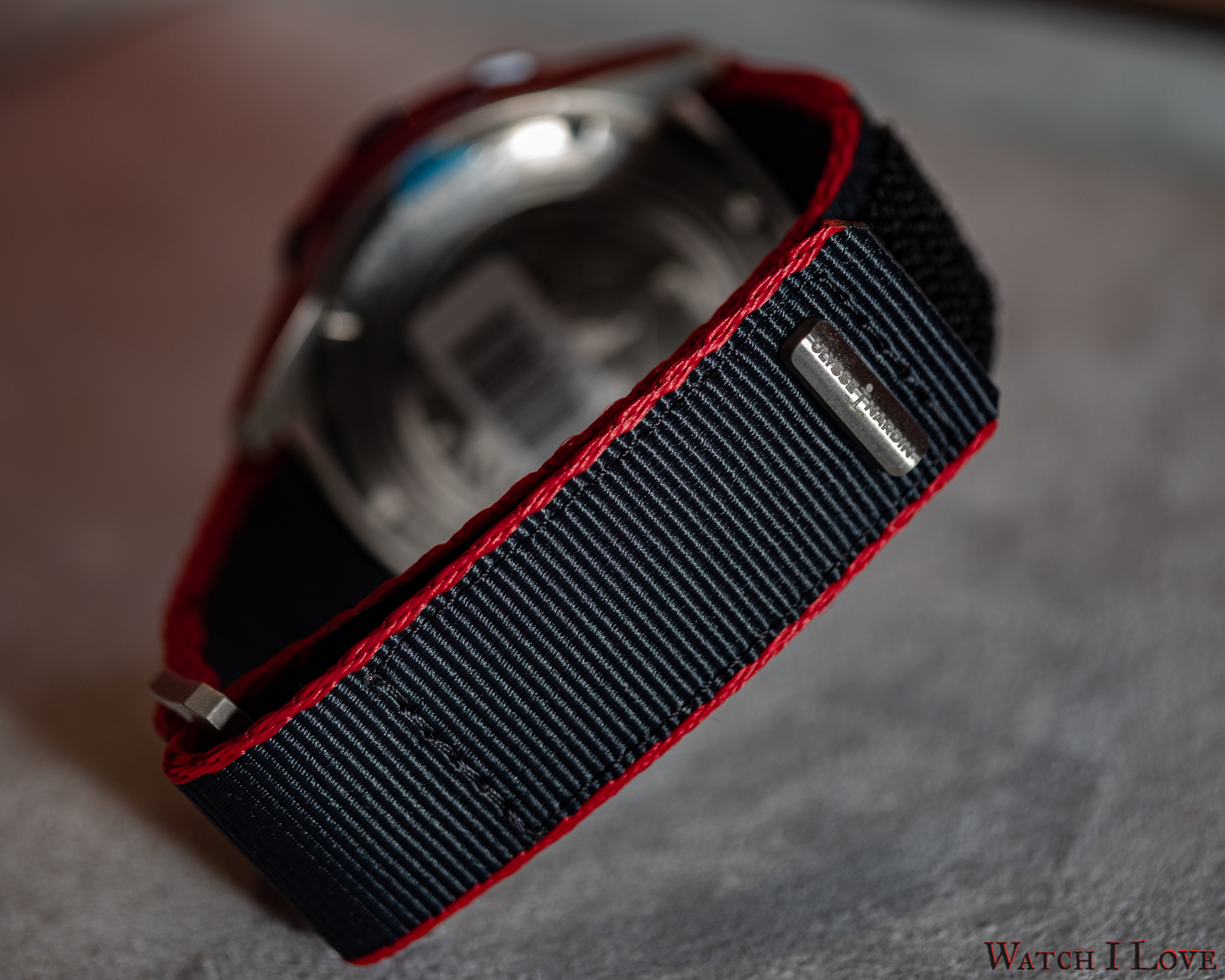 As part of the Diver X family, the Nemo Point variation brings many similarities. The case presents some changes: the crown, crown protection and the bezel come with blue PVD. Instead of the rubber strap, we found a very comfortable textile strap. Several red accents are presents and make a nice contrasting theme.