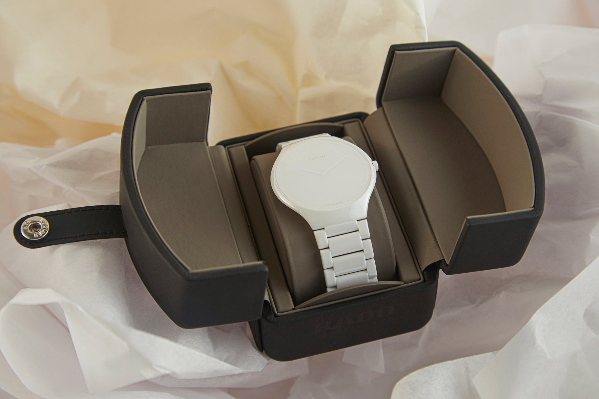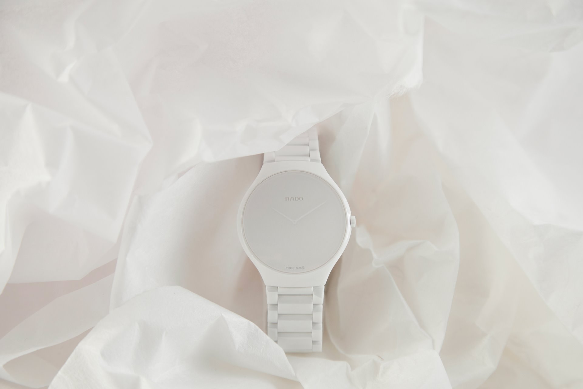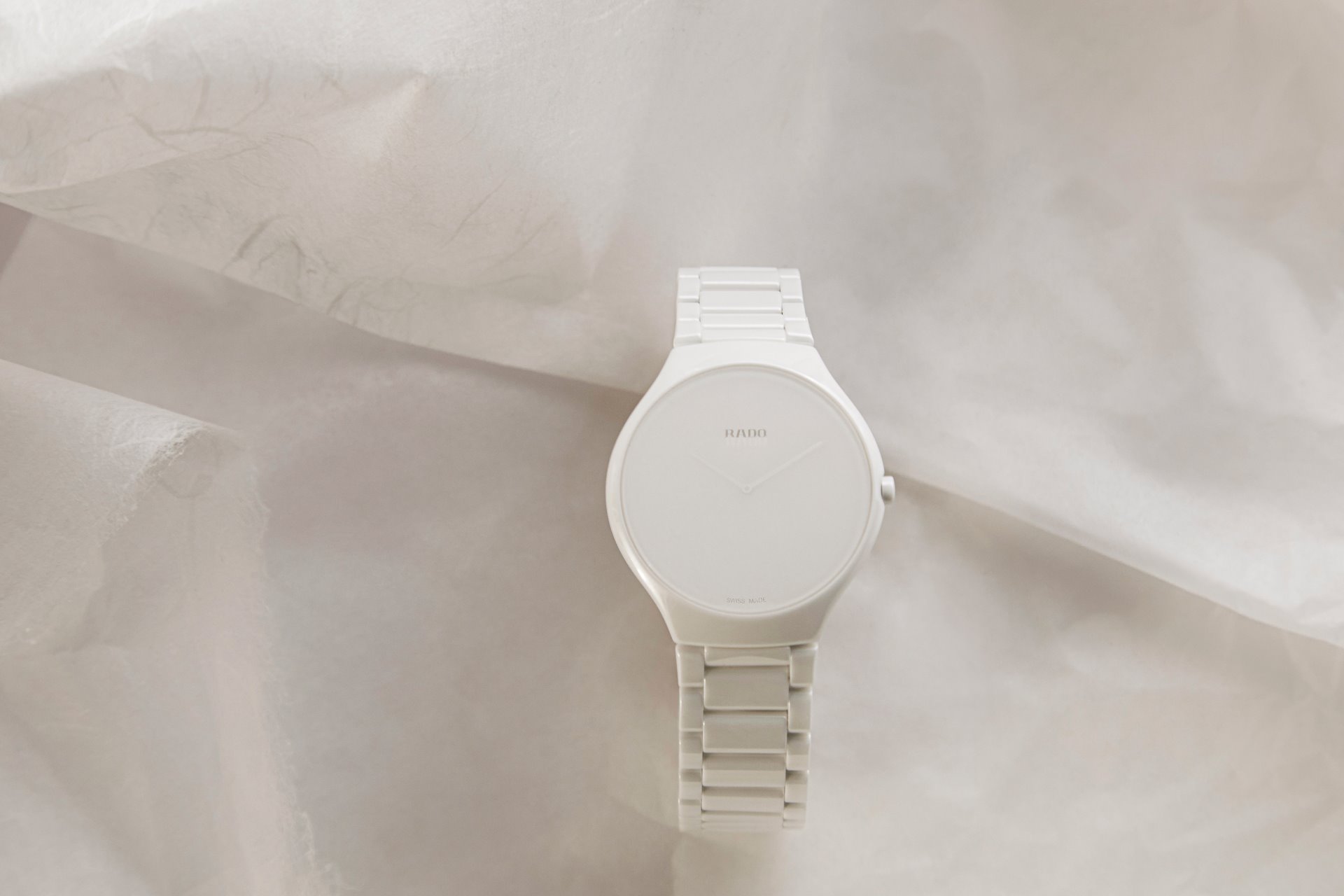 Telling the time becomes a deliberately contemplative moment with the Rado True Thinline Stillness. “Knowing that time is in our hands while also forgetting it at the same time,” is how Li Edelkoort describes it. “Freeing ourselves from the hustle and bustle of our daily lives by extending awareness for a second, realising the majesty of a minute and grasping the empathy of an hour.” In this way, the new model gives us something that can be enjoyed anew every day: a moment of stillness and meaningfulness.
