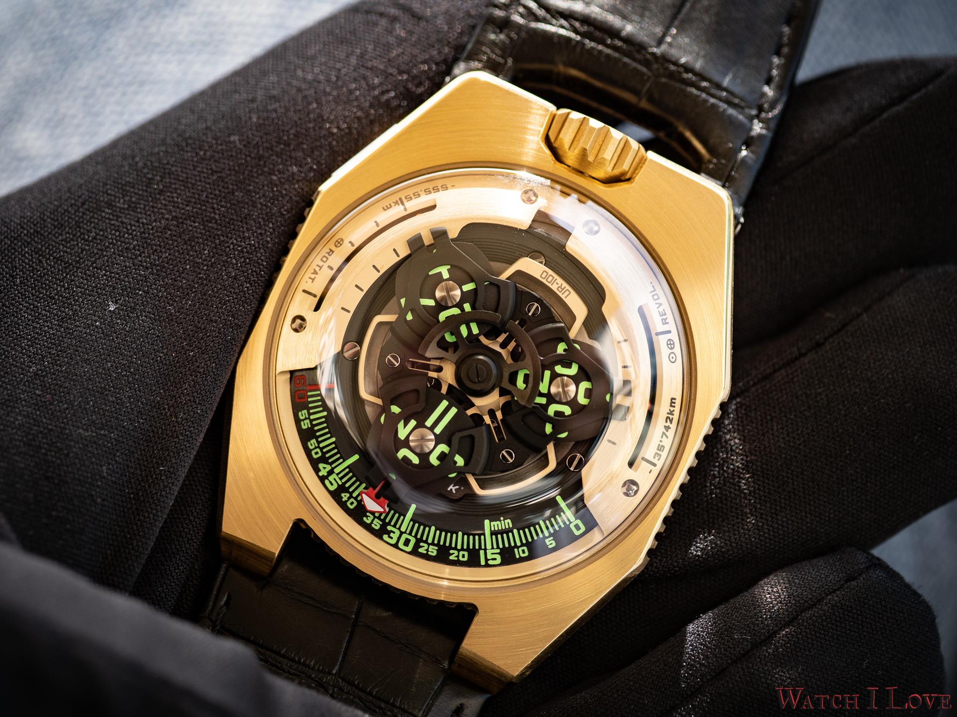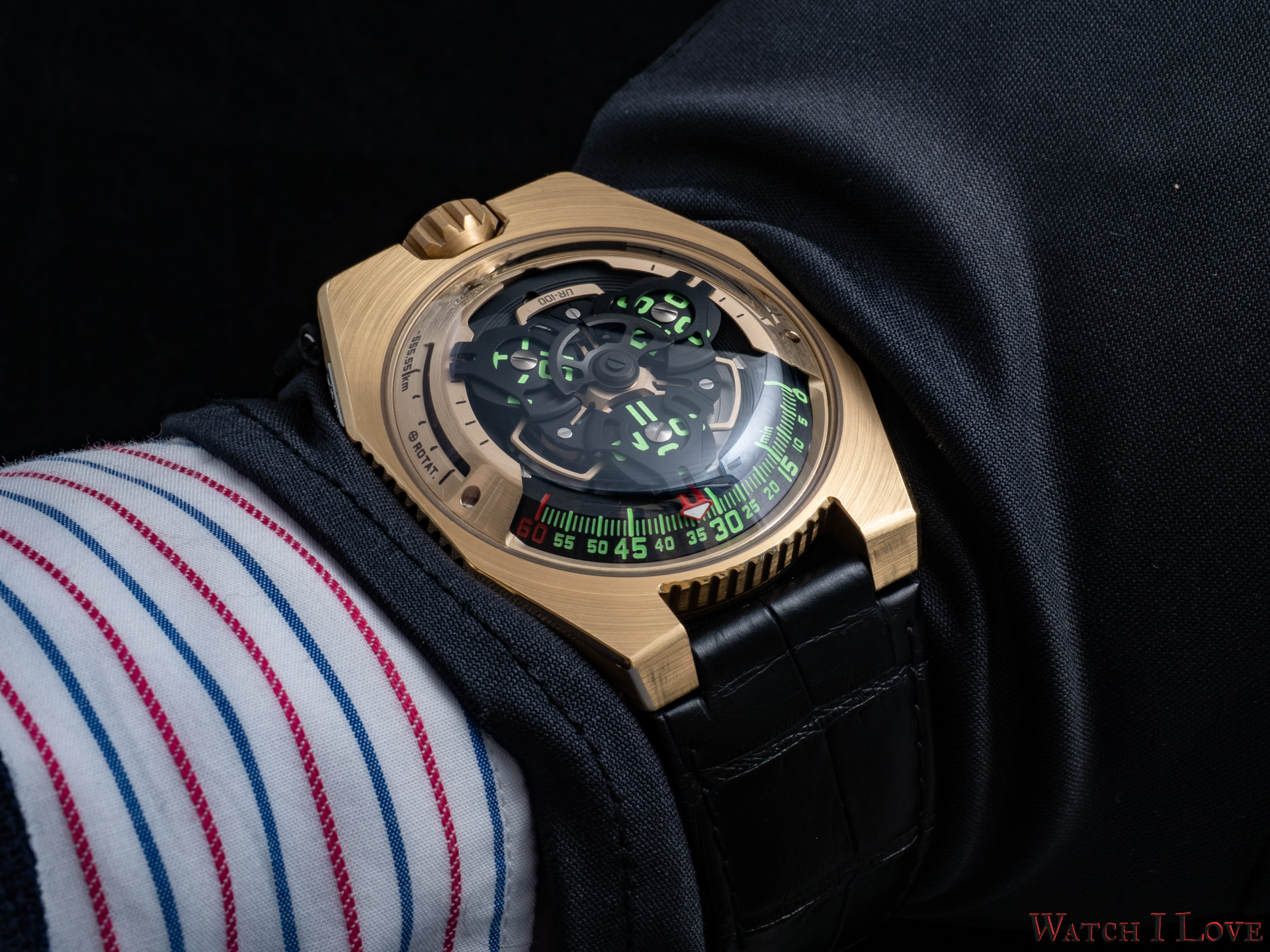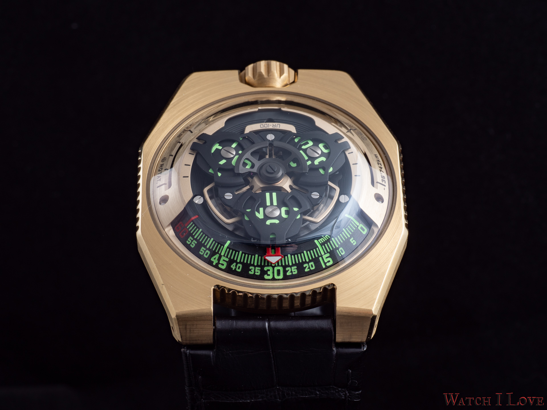 UR-100 Gold Edition is an easy to wear URWERK watch (especially comparing to other larger pieces from this independent). As all the URWERK timepieces, the UR-100 is a daring invitation for space adventures.