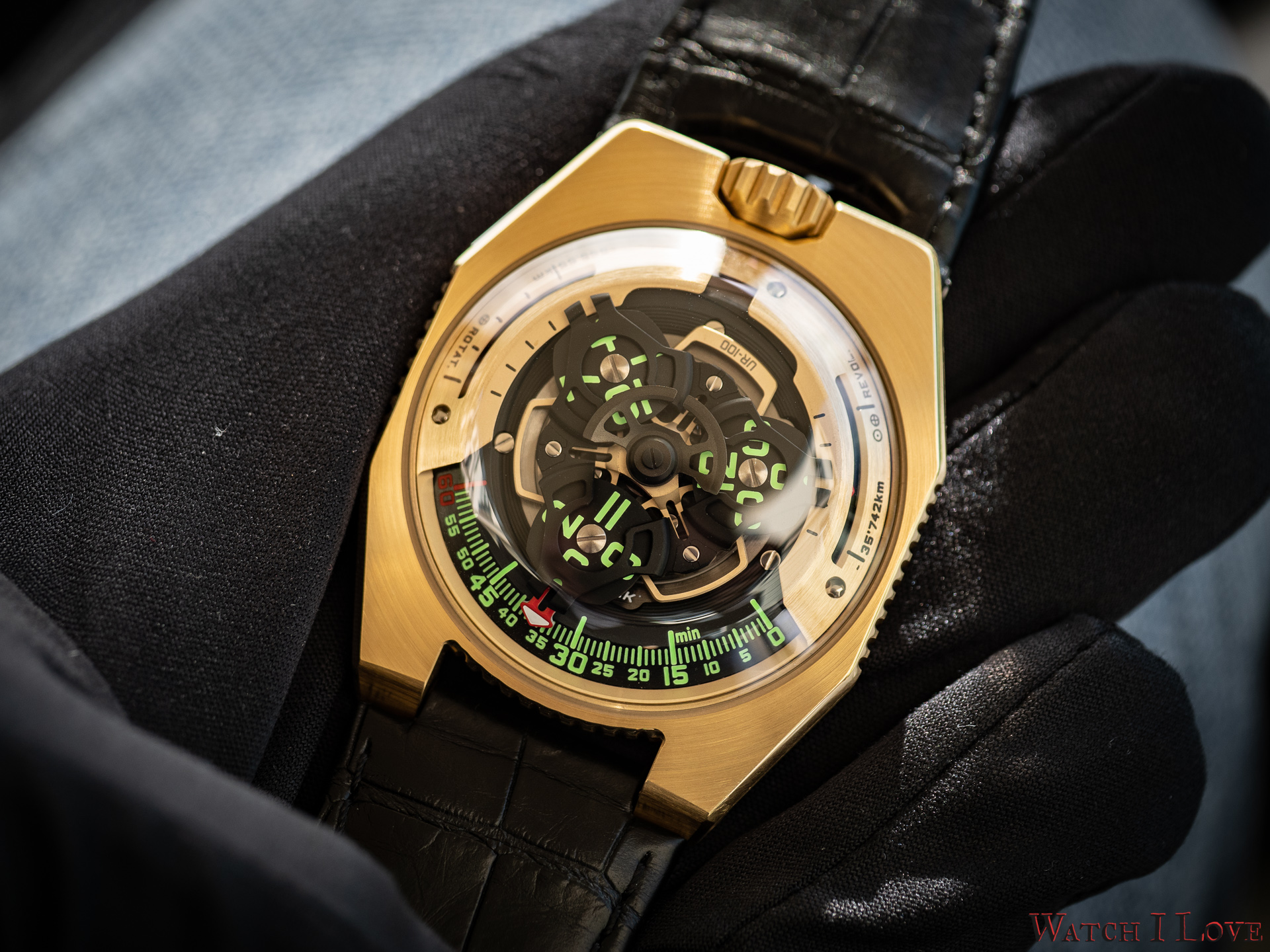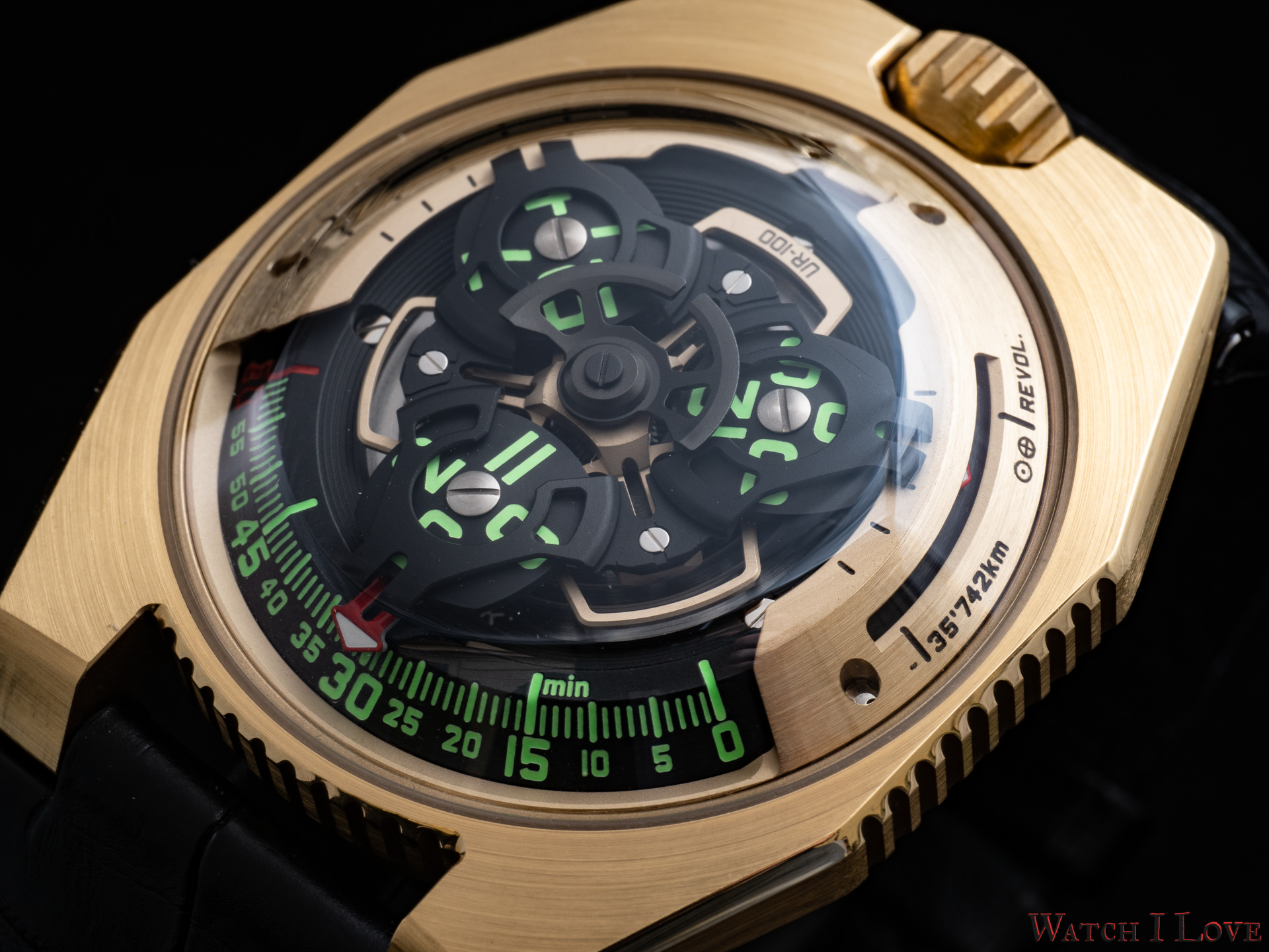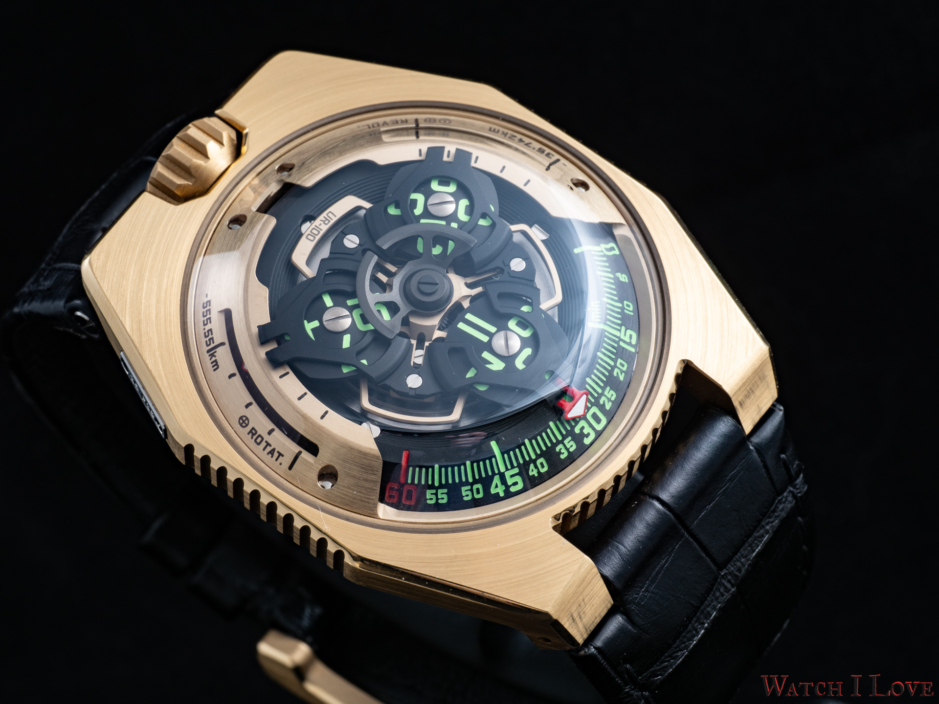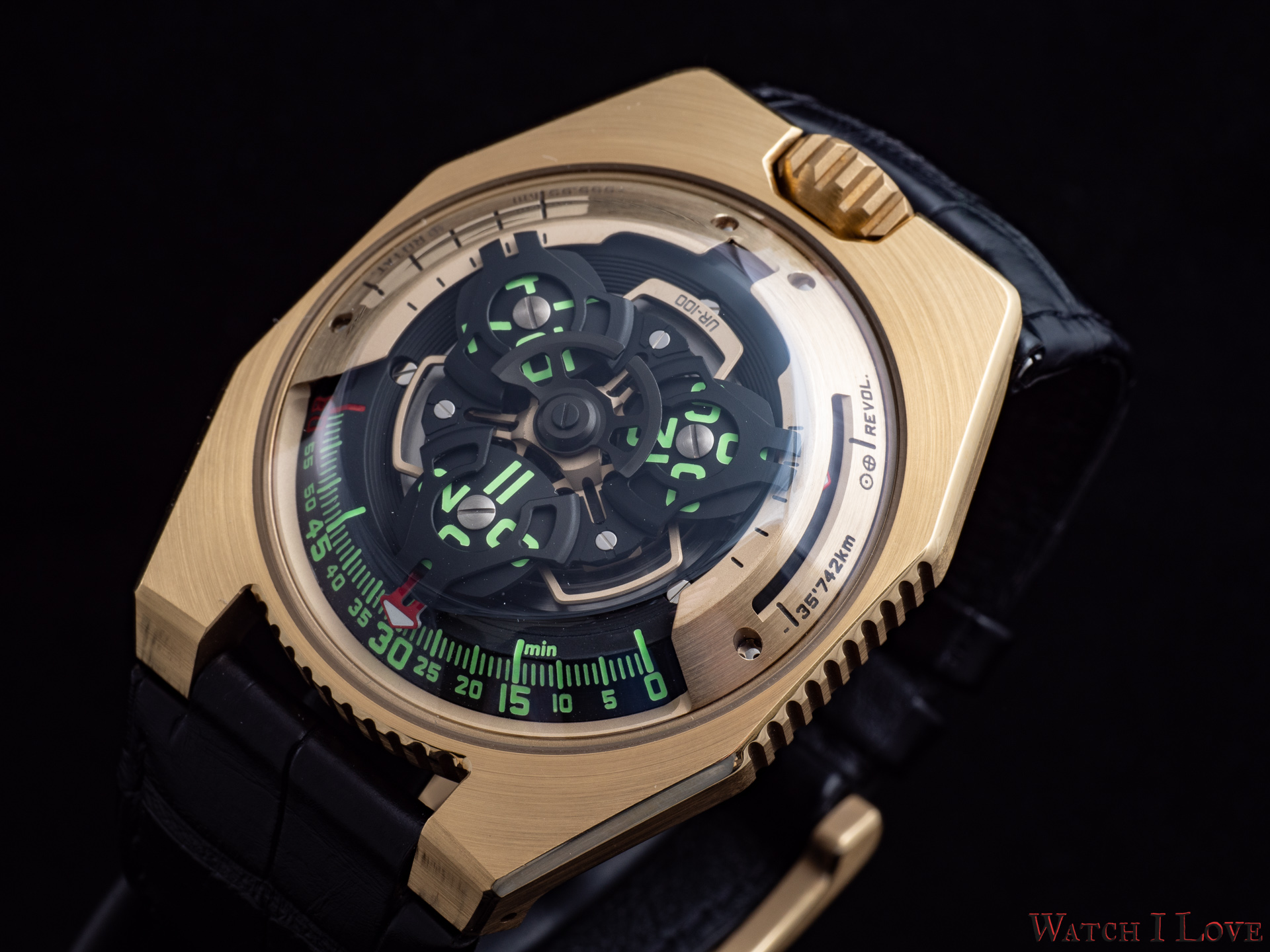 UR-100 Gold Edition is an easy to wear URWERK watch (especially comparing to other larger pieces from this independent). As all the URWERK timepieces, the UR-100 is a daring invitation for space adventures.