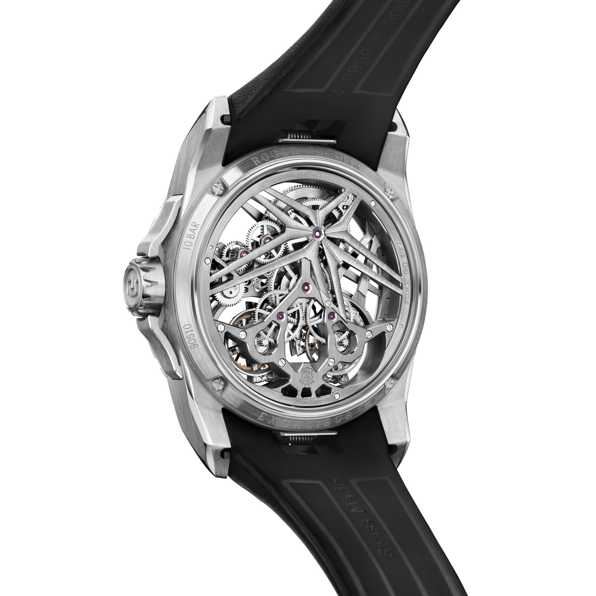 Since 2005, Roger Dubuis has been shaking up the world of Haute Horlogerie with its inimitable artistic skeleton design, regularly reinterpreted by disruptive materials and designs. For the new Roger Dubuis Excalibur Skeleton Double Flying Tourbillon, the goal was to optimise each of its components so as to offer the members of a hedonistic tribe a watch entirely aligned with their desires and their lifestyle. An ideal blend of design, performance and comfort.