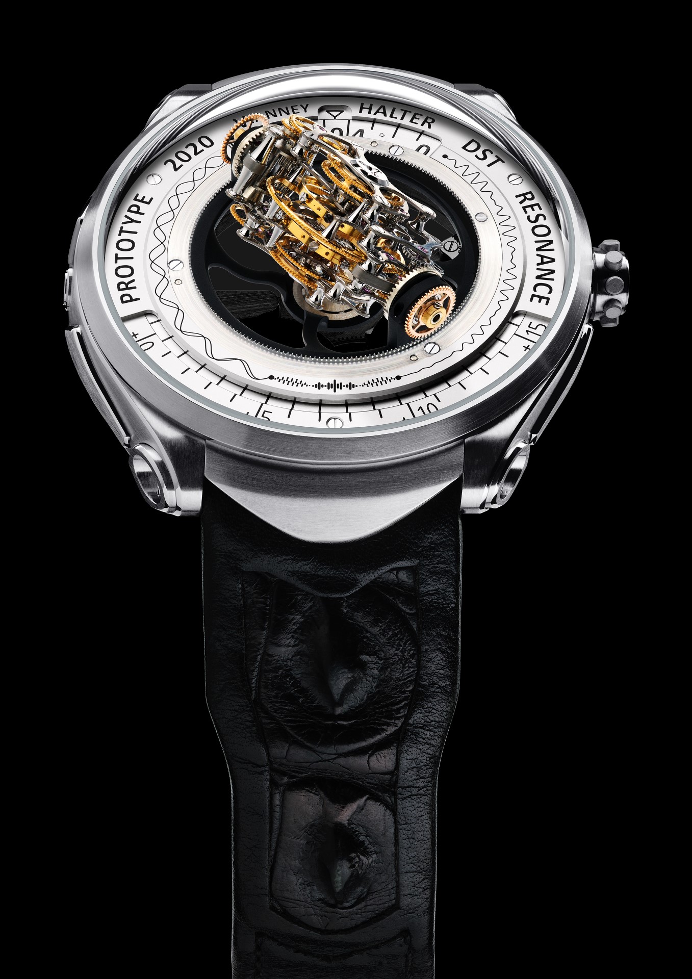 The Deep Space Resonance Prototype is a manually wound, 65h power reserve watch. The balances start to resonate as soon as the energy is sufficient to set the balances in motion, and stay synchronized until all motion stops.