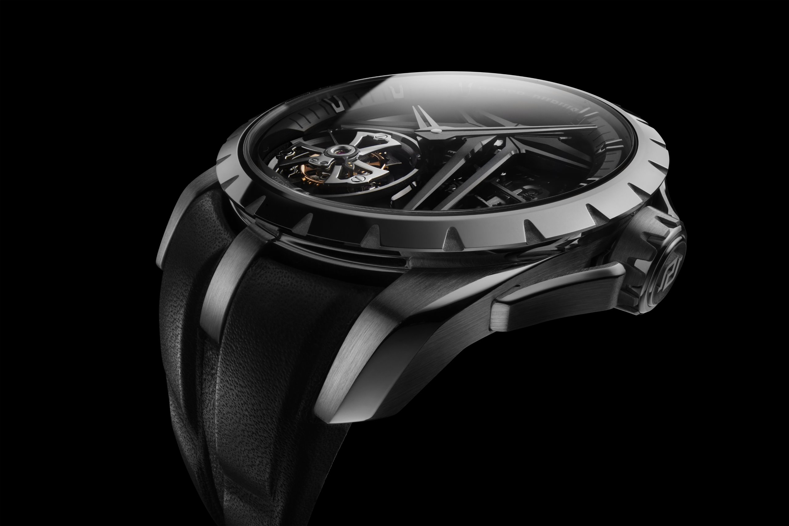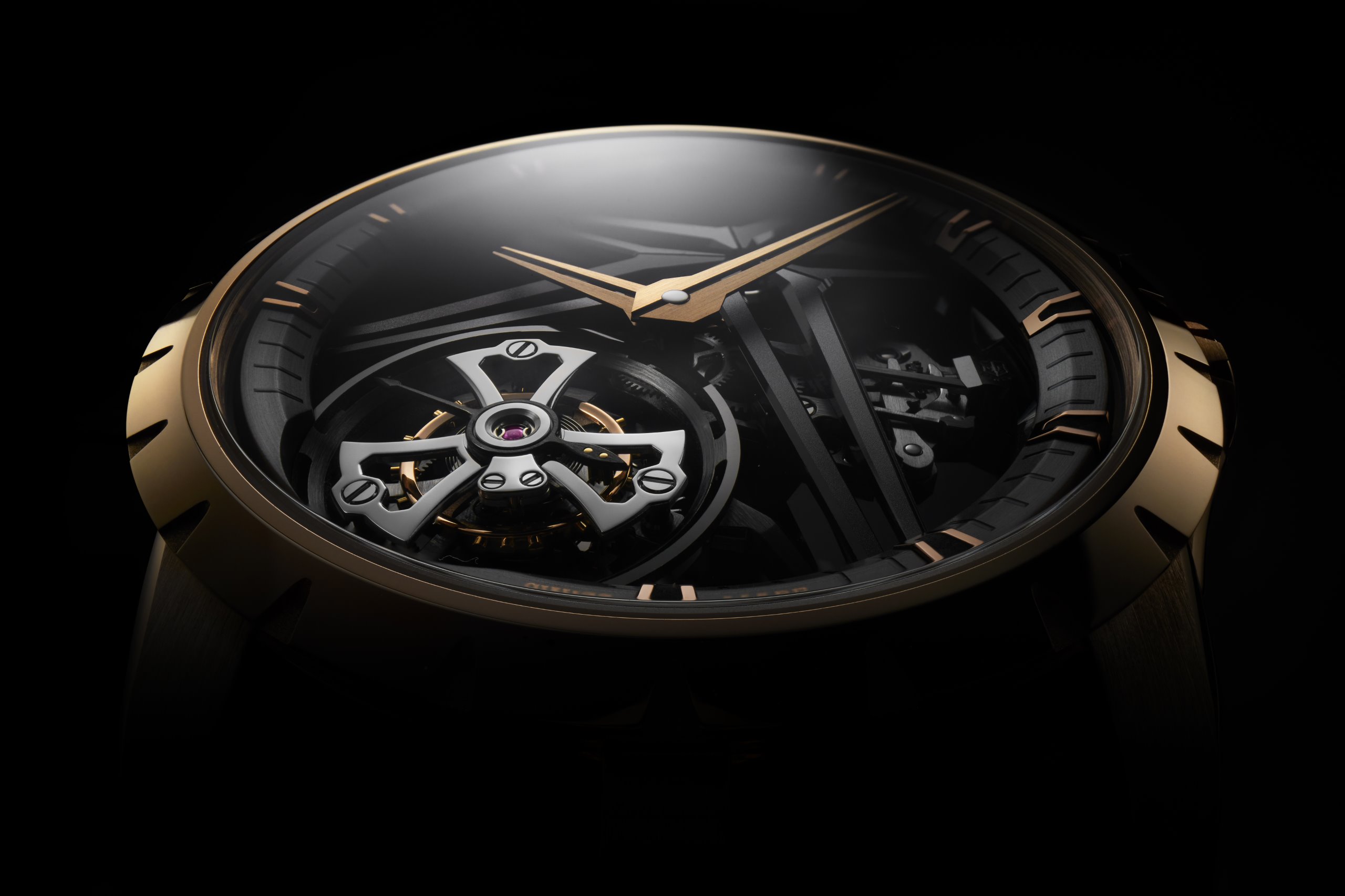 Roger Dubuis has consistently demonstrated a penchant for impertinence and extravagance. Sustained by an integrated manufacture, a flagrant disregard for convention is the backbone of its bold attitude. A true innovator, the luxury watchmaker is driven by an irrepressible willingness to come up with high-impact ideas, boundary-pushing technologies and unmistakable out-of-the-box designs. Living by the motto NO RULES, OUR GAME, the Maison proves once again it is the most exciting way to experience Hyper Horology with the launch of the new Excalibur Single Flying Tourbillon.