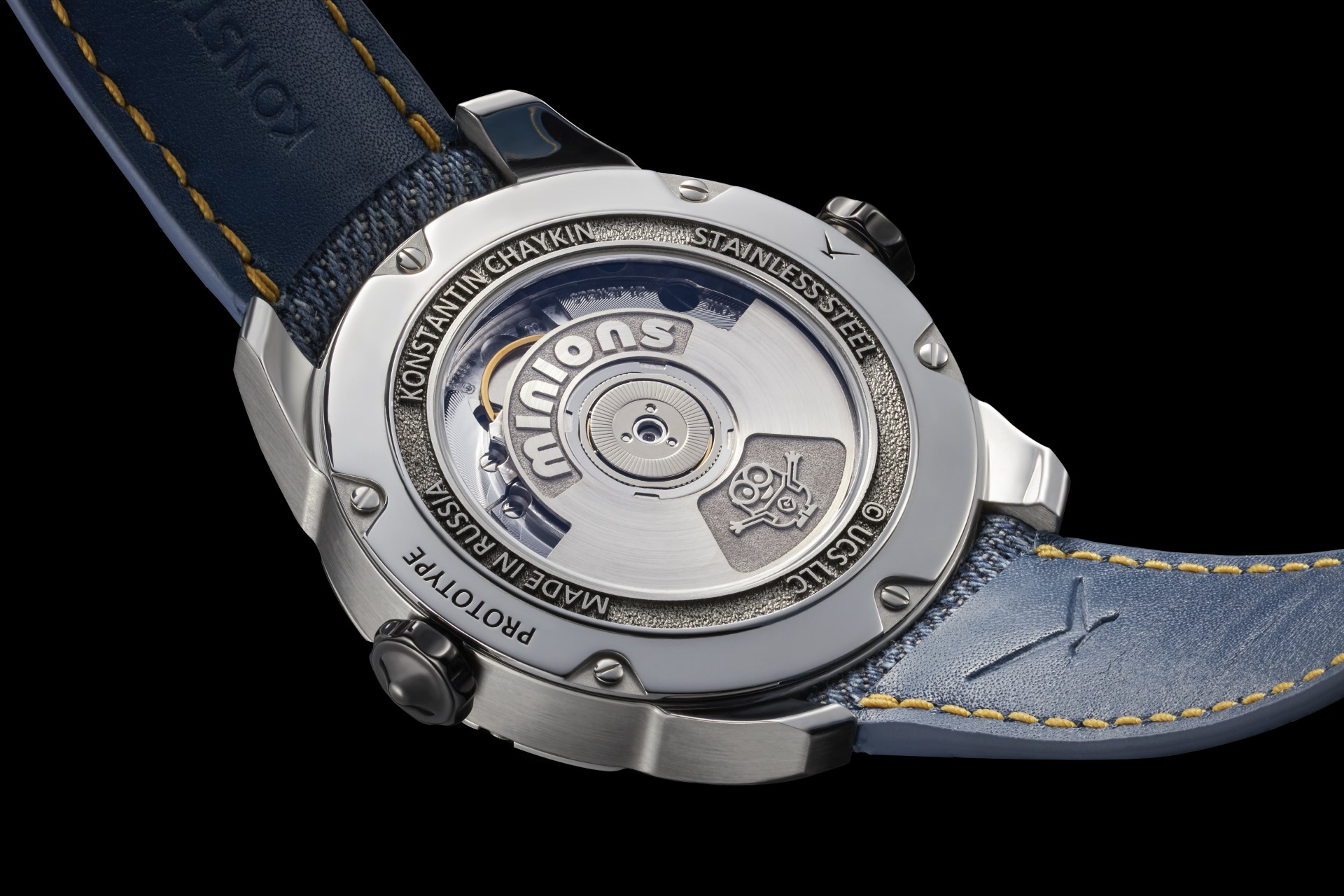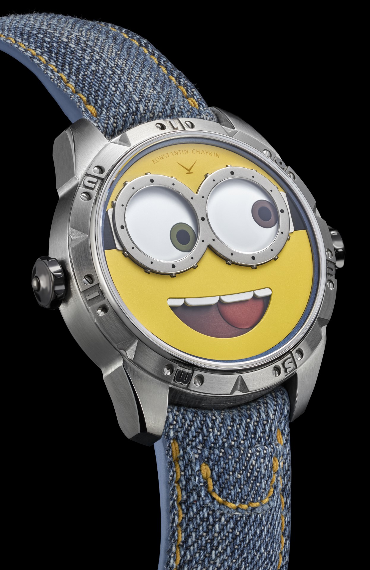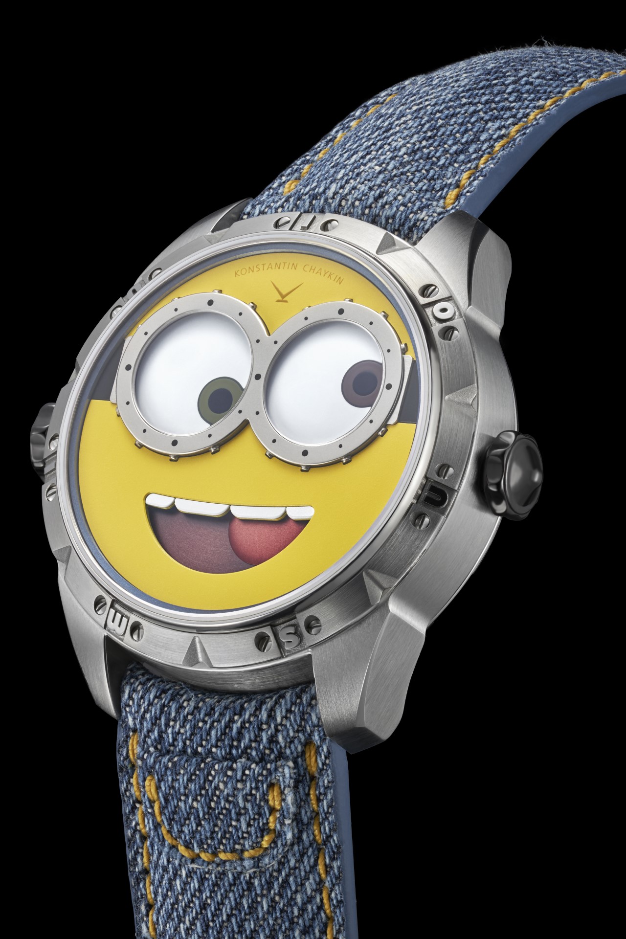 The Minions watch, equipped with a new automatic Caliber K.07-3 with an automatic winding developed by Konstantin Chaykin especially for it, is offered in a 40 mm stainless steel case and produced in a limited edition of 38 pieces.