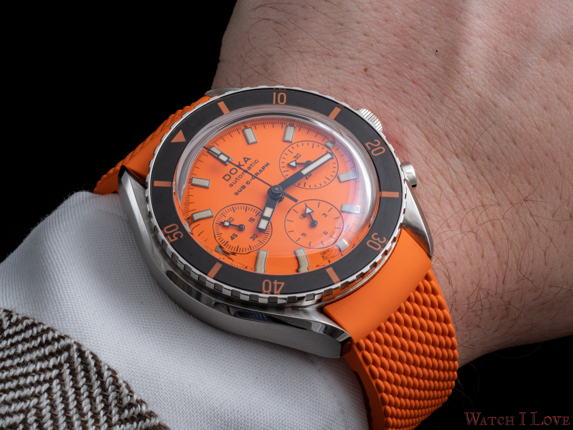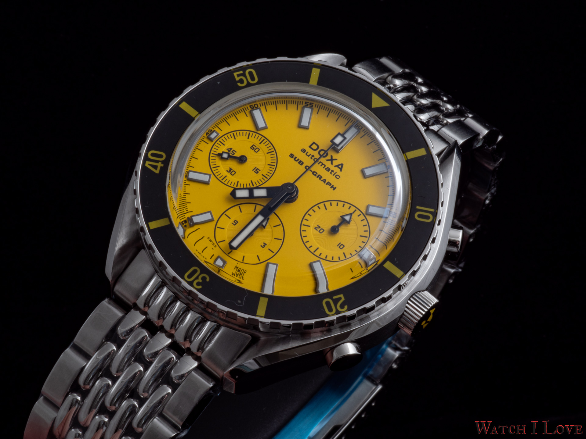Doxa SUB 200 C-Graph is an excellent diver chronograph offering a lot of value for its price. I think it wears much smaller than its specified size, it is not tremendously heavy on the bracelet and it has colours. I love both bracelet and strap options, having each its own advantages. One cannot go wrong with this one – robustly built, robustly powered, beautiful. The available colours make it an obvious choice for summer, or a watch to sweeten the cold winters.
